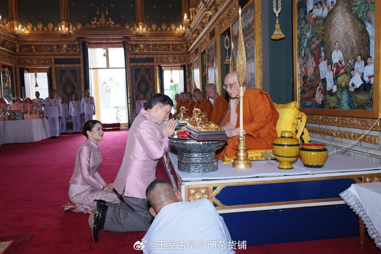 王室王室泰国王室奥拉侬 哈哈哈果然是真的大家记不记得,去年九月份曾经发过一组照片,当时巴吞他尼府的佛像落成仪式,都说奥拉侬小主会出席,结果她最后没来?当时的现场清路,设围障,而且禁止记者拍照(有违规的记者被请去咖啡馆坐着,并被命令删照片),甚至寺庙的摄像头都关掉了。有在现场的暹罗瓜路信誓旦旦的说奥拉侬小主在场,而且是和狗哥一起来的,因为没有照片大家都不怎么相信然鹅奥拉侬小主确确实实就在现场,狗哥陪她出席了9月8日的生日祈福仪式,今天自己把照片放出来,已经在暹罗刷屏,暹罗网民都沸腾了!哎呦呦新夫妇还穿情侣装呢,难怪奥小主的亲属对别人说他们家的女儿已经是国王的妻子(没错不是命妇),人家没说谎啊奥小主晋级奥娘娘应该就是真的。但是大家都知道,暹罗王室成员的头衔一定要经过册封才作数,期待奥娘娘的“封妃大典”