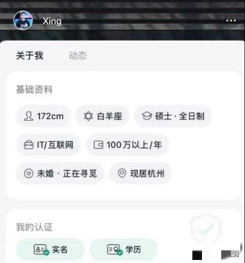 最近,宇树科技创始人王兴兴在相亲平台的相亲帖被网友发现,这事很快引发了大家的热议。他的相亲主页经过了平台的官方实名认证和学历认证,个人资料填得简洁又真实,能看到标注了硕士学历、年薪百万的信息。 在相亲帖里,王兴兴列出的理想伴侣标准也很明确,要求对方自我认知清晰、有基本的科技素养、三观端正,同时没有不良嗜好,不吸烟不喝酒,为人还要真诚善良。 针对这件事,相亲平台的客服也做了回应,称从截图能看到该账号已经完成注册和认证,但因为平台没有定向搜索的功能,暂时没办法确认这个账号是不是王兴兴本人。