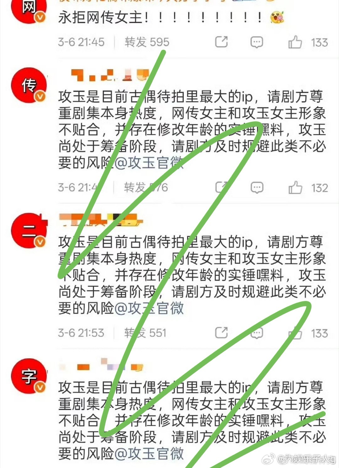 侯明昊粉丝在攻玉官博排字永拒鹤男
