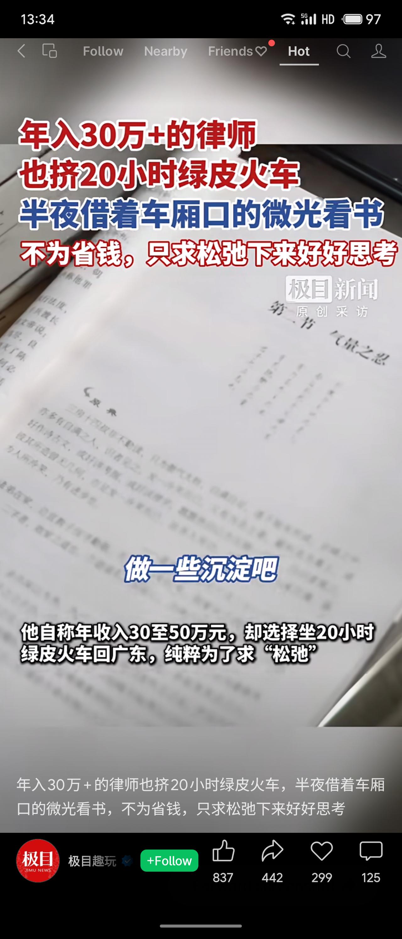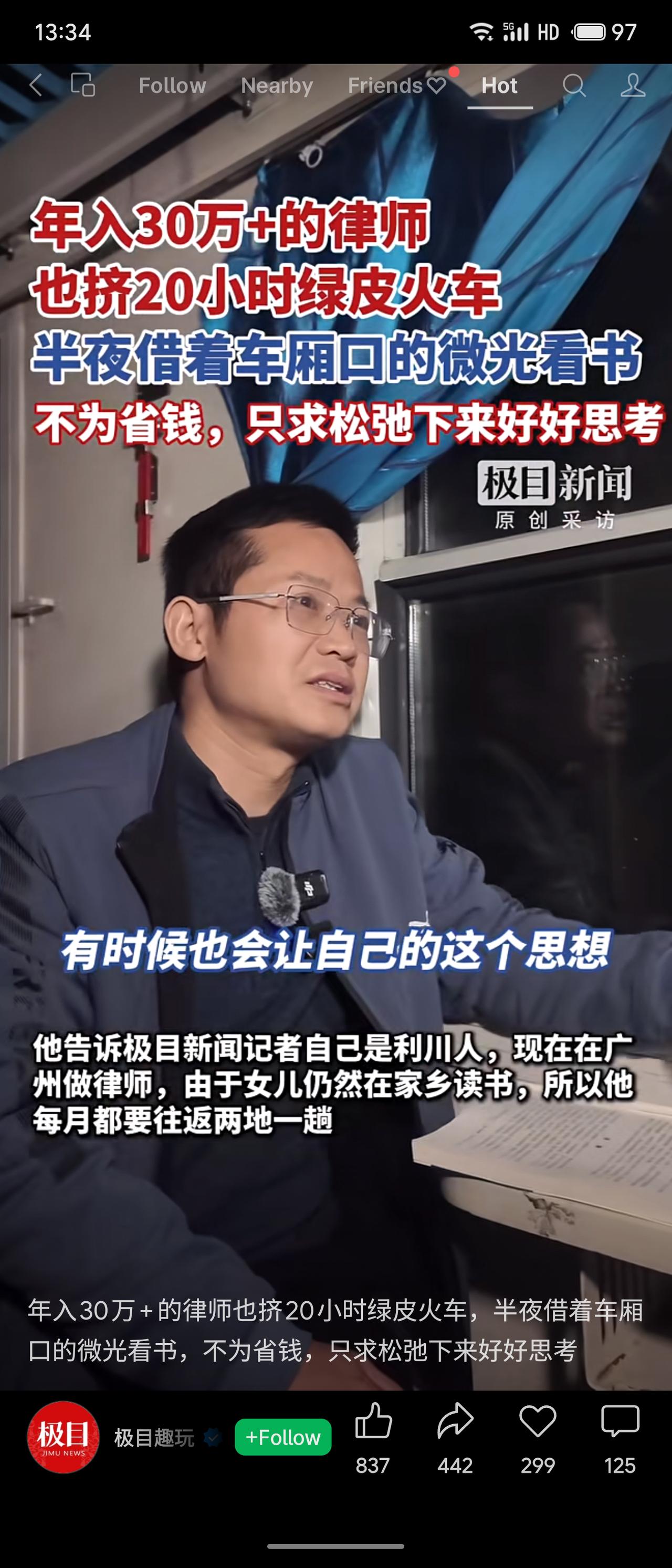 一位年入30-50万的律师为求“松弛”,每月往返广州与利川时,选择乘坐20小时的绿皮火车,并在深夜借着微光看书沉淀思考。事件展现了在快节奏现代社会中,部分人主动选择“慢生活”以寻求精神栖息地的独特价值观,引发对生活节奏与内心平衡的广泛思考。
