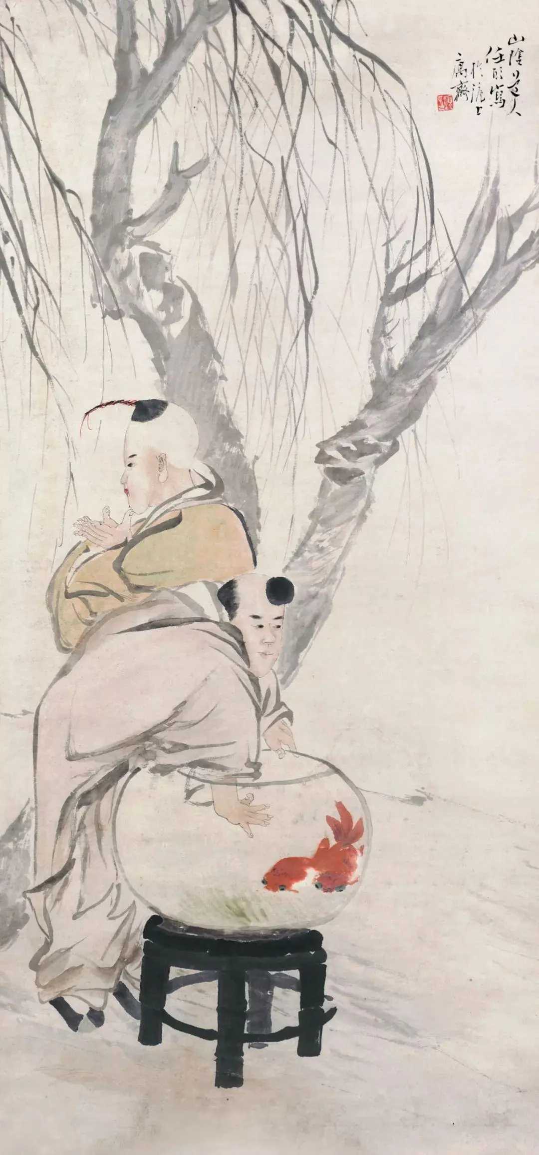 任伯年是一个很独特的画家,在“三任”中(任熊字渭长、任薰字阜长,任颐字伯年),任伯年的成就及声誉最高,可以说他是一位“全能”的画家。他对于花鸟、翎毛、人物、山水乃至走兽、牲畜,无一不能,花鸟、人物尤为精妙,点写、双勾相得益彰,章法意境非常巧妙。这就是中国风遇见艺术