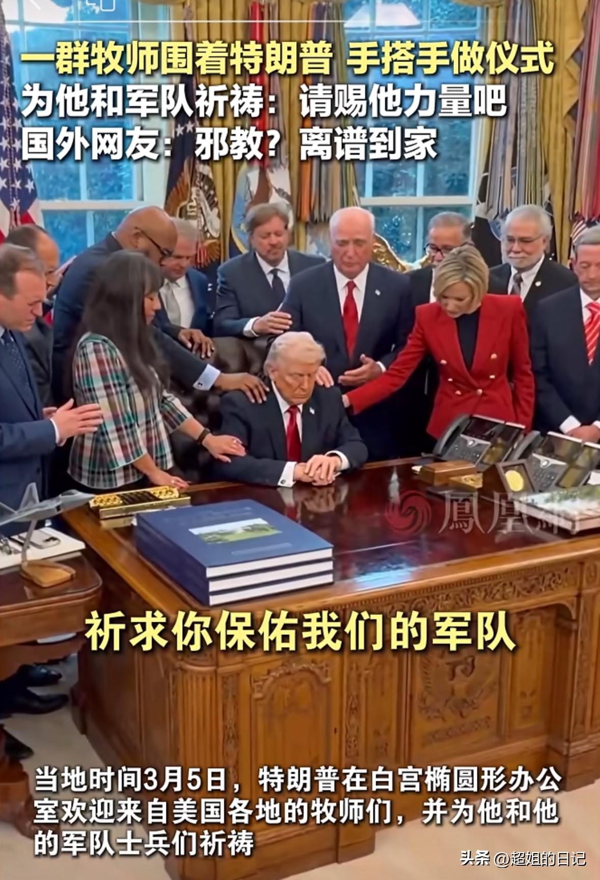 老特跟伊朗的较量,从物理攻击转到魔法攻击,老特居然找了一堆牧师,把手搭在他的身上,进行祈福,估计他是被追杀令吓到了,开始迷信了。 一个国家总统,能信这些东西,感觉也挺有意思,跟喜剧一样,一点不严肃,如果你信奉的神灵真能保护你,几千年的伊朗信奉的伊斯兰教,怎么就没保护得了他们的精神领袖,哈梅内伊呢。 自作孽不可活,这个老特就是一个祸害,自从他上台,就跟个精神错乱一样,到处惹是生非,世界动荡不安,简直就是流氓做派。