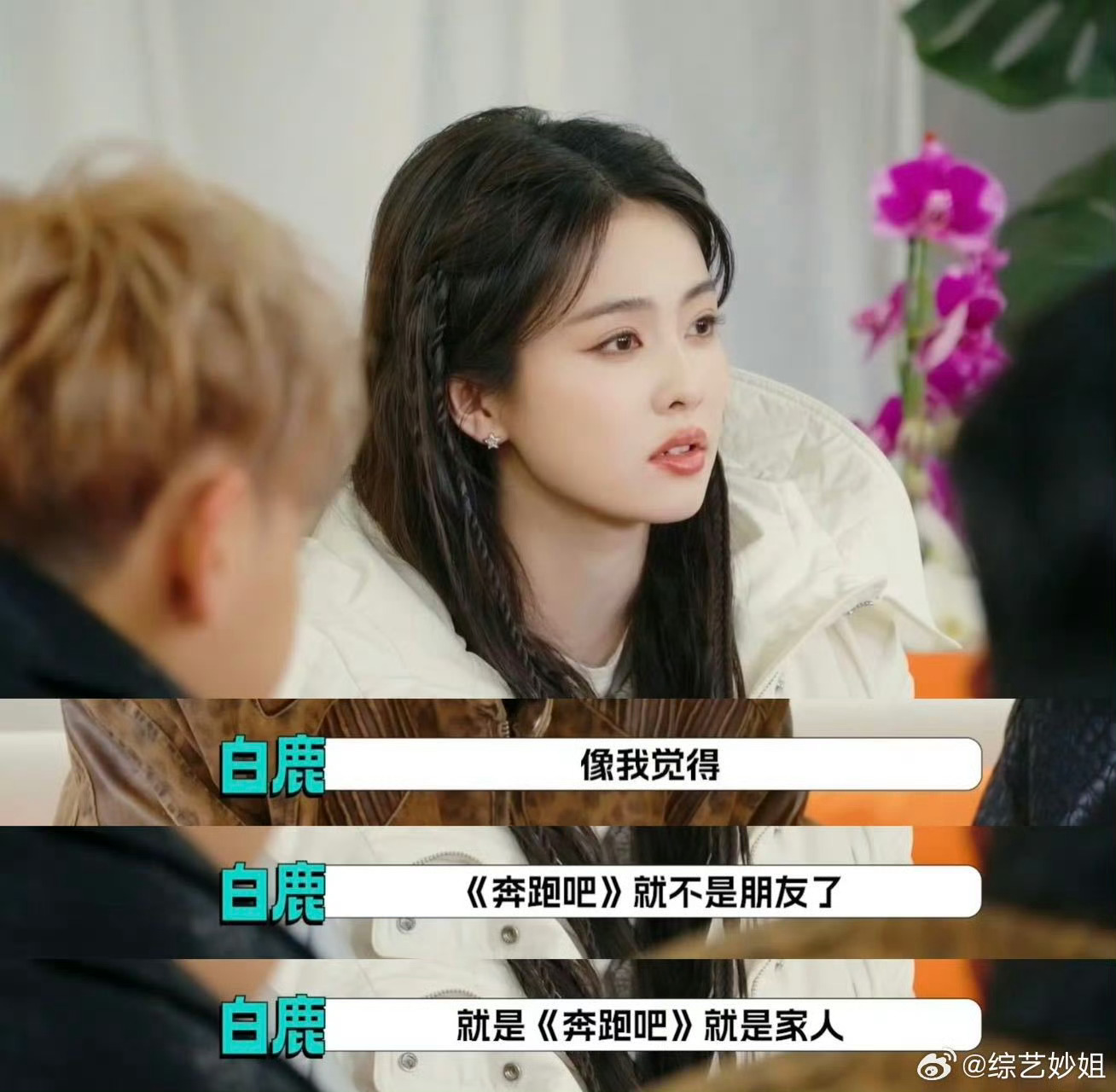 白鹿说付出真心很重要,说跑男不是朋友,而是家人。白鹿回应和跑男团关系