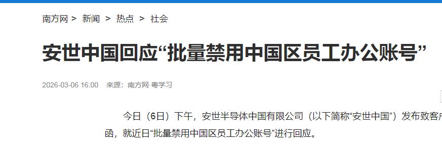 真相大白! 荷兰的帮凶曝光了: 安世中国公告,中国区员工办公账号被批量禁用致部分生产流程中断,中国区公司随后启动应急预案,当前,大部分业务已恢复运行。 最近安世半导体中国区突然被荷兰总部大面积封锁员工账号,关键系统用不了,直接导致一些生产线都干不动了,这事儿传开,大家都懵了,究竟发生了什么? 咱们今天就剖开这场舆论风暴的来龙去脉,看看背后的猫腻,以及这件事到底带给我国半导体行业什么警示。 先甩一句话:全球产业链固然重要,但核心技术、核心系统的命脉始终要掌握在自己手里,能靠自己就决不能交给别人。 铺垫一下背景。大家都听过安世半导体这家公司吧?它其实前身是荷兰飞利浦的半导体部门,后来被我国企业闻泰科技收购,但公司总部和核心研发力量依然留在荷兰。 有点类似于很多“海外华裔企业”,明面上咱控股,但实际上关键资源还是被老东家捏着。 在这种结构下,很多看似平稳的合作,很可能变成别人的手雷,随时能引爆我们的痛点。 2026年3月3日的那次突发事件其实不是偶然。 荷兰安世总部直接批量禁用中国区员工办公账号,导致像Office 365、SAP等关键管理系统一夜之间全瘫痪。 想象下企业有多少东西都要靠这些系统运转,采购、生产、物流、售后、财务,统统卡死。 一时间,安世中国区收到的客户晶圆,根本没法录入也别提转生产了。 最实际的后果就是有订单没法做、生产线停、上下游合作商全部受影响。 表面上是一场技术事故,实际哪有这么巧?前后文一对比,就是有备而来。 这种事不是第一次,细捋下前因,早在2025年9月,荷兰就以"国家安全"为由强行接管安世总部。 然后直接冻结大额资产,维护所谓“本土企业利益”,把中方指派的CEO都赶走了,甚至连中方在安世的股权都被荷兰政府强制托管了。 说句大白话,名义上鸣锣喝道保障安全,实际上就是控资本、掌资源。 2026年3月的批量禁用账号,只不过是这场博弈的后续升级,核心目的就是打压中国区、切断中国手里的主动权。 很多人问,荷兰凭啥这么霸道?其实道理很简单。 安世半导体虽然变成中国企业,但在国际层面,它还是打着原荷兰本土企业的旗号。 荷兰当局知道,只要抓住“本地身份”这个说辞,就能合法打压甚至完全掌控,不怕外界多说。 更别提,背后还有美国撑腰,各种舆论、政策和联盟,都是给荷兰打压中资做后盾。 具体怎么撑腰呢?美国自2022年以来就用了各种套路,目的很清楚,就是担心我国半导体产业的成长速度。 2025年8月,大家还记得吧?美国通过新的禁令,把英特尔大连、三星中国和SK海力士中国这些原来还在豁免名单上的企业,全部移出所谓的“经验证最终用户”名单。 结果就是这些在华合资企业,想用美国设备、技术、软件,需要重新申报许可证,能不能批得过全看美国脸色。 最狠的是,不但扩产升级不行,甚至要企业放缓业务、甚至考虑撤出国内市场或者把工厂转移到国外。这是啥道理? 表面上打着“保护本土安全”和“防技术泄漏”,本质是以技术封锁割裂全球市场,直接磨掉中国半导体产业链的活力。 环环相扣,这就解释了为什么安世半导体被连续“下绊子”。 其实行业里的人都明白,这种操作方式类似于变相制裁。 一旦核心资源、关键系统,尤其是IT、ERP、管理平台这些命门在外人手里,对方一个按钮全瘫痪,公司的运行根本不受自己的掌控。 某种程度上,这就像是个上锁的风扇,别人帮你开着爽,但只要一关电闸,你在屋里再努力就是干着急,啥都动不了。 讲到这里,很多网友可能觉得压力不小,是不是国外一动手,国内半导体企业就束手无策?其实并不是。最先动起来的就是安世中国自己。 2026年1月,他们已经提前把全部晶圆采购渠道转为国内合作,干脆和荷兰总部断了供应链。 为的就是不再被动挨打,掌控主动权。 鼎泰匠芯、芯联集成这些本土供应商已经足以满足安世中国的关键需求。 这布局要是晚一个季度,后果完全不同,所以说“危机感”在高科技企业里一点都不能少。 这种提前自救、国产替换的应对思路,就是我们整个半导体行业这几年反复强调的战略重点。 如果不是提前准备,等到对方操作切断一切,你再想找国产顶上,那就是临时抱佛脚,往往救不了急,一个季度的耽误可能损失成倍扩大。 参考: 南方新闻网——安世中国回应“批量禁用中国区员工办公账号”