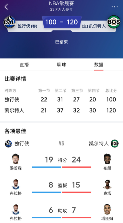 时隔298天,塔图姆王者归来! 复出首秀,前6投全失后5连中,炸裂补扣燃爆全场。 北京时间3月7日,凯尔特人主场对阵独行侠,塔图姆伤愈复出。 上半场,他手感欠佳,前6投皆失,甚至投出三不沾,空篮也扣飞。 但半场结束前1分16秒,他补扣得分,随后底角三分再中,连得5分引爆球馆。 全场,塔图姆出战27分钟,16投6中,砍下15分12篮板7助攻。 从开局6中0到5连中,他宣告满血回归!赛后,球迷起立欢呼,298天的等待,值了!