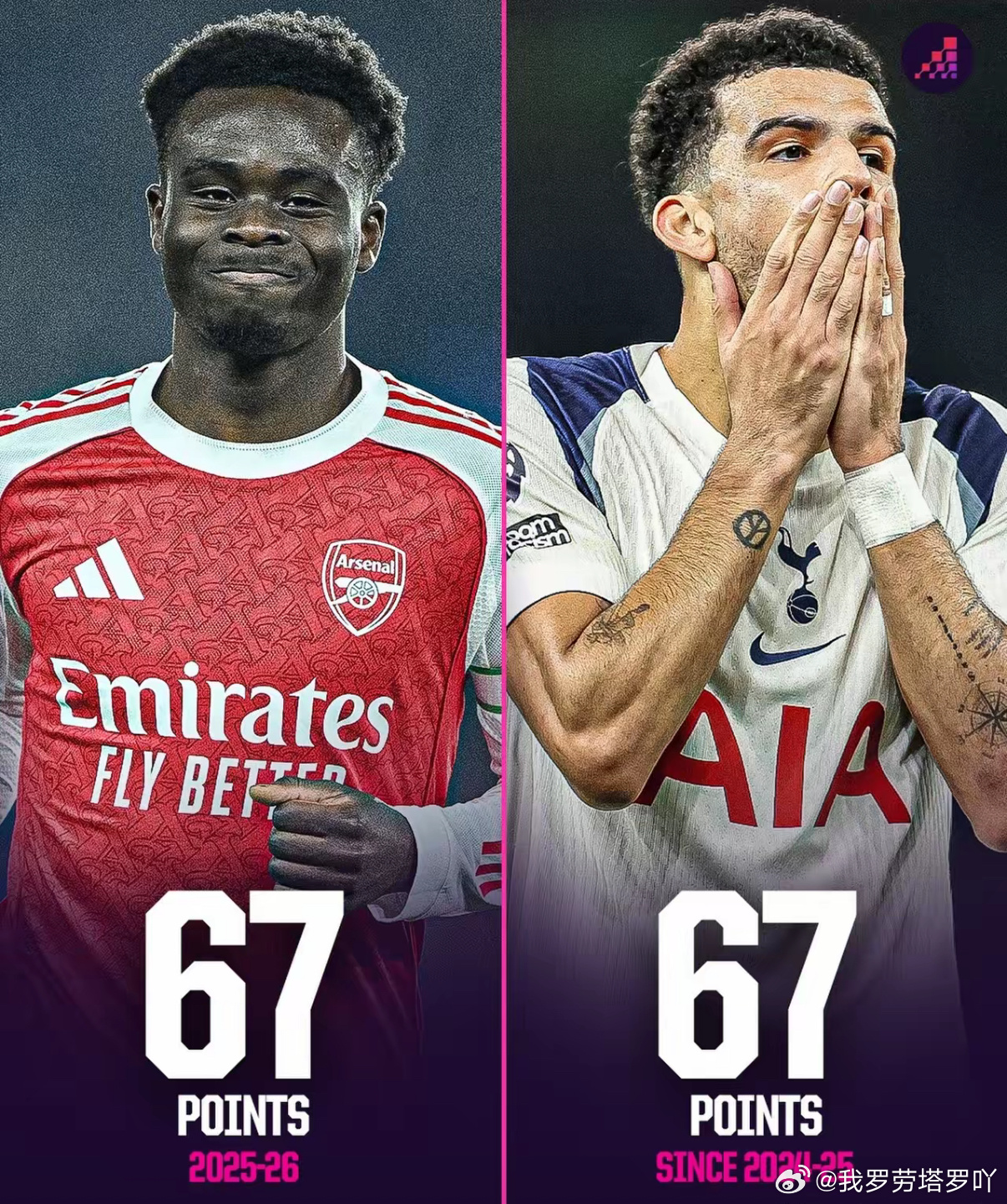 北伦敦的差距究竟有多大?一张图表便能清晰呈现。本赛季截至目前,阿森纳已斩获67分。反观热刺,自2024/25赛季开启以来,历经多轮角逐,却也仅仅积得67分。简而言之,枪手一个赛季所积累的积分,竟与热刺近乎两个赛季的总积分持平。这悬殊的差距,着实令人唏嘘不已。😅那么,在你看来,当下的这支阿森纳,是否已然成为英超赛场上最为稳定的球队了呢?