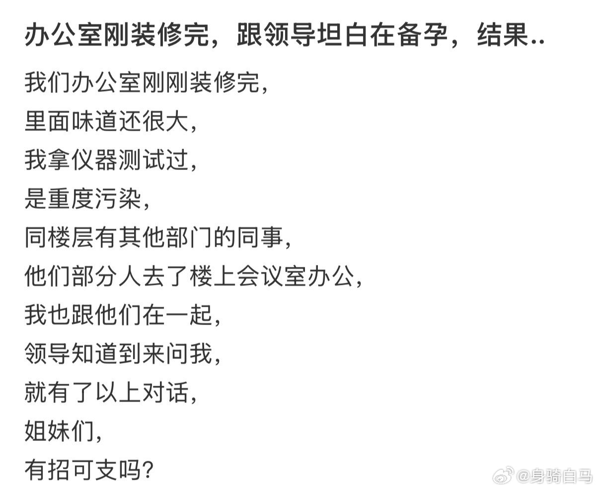 办公室刚装修完,跟领导坦白在备孕,结果..