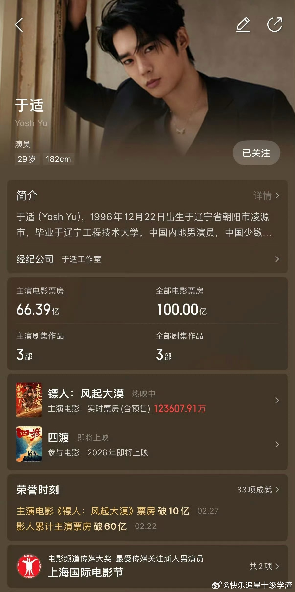 于适电影票房百亿达成!