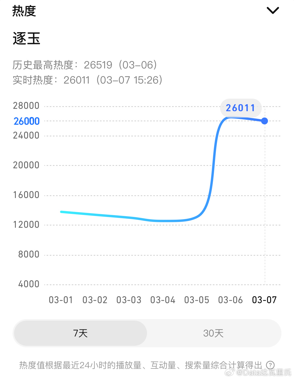 逐玉腾讯站内热度破28000 进入必看俱乐部逐玉爱奇艺站内热度破9300 次日热