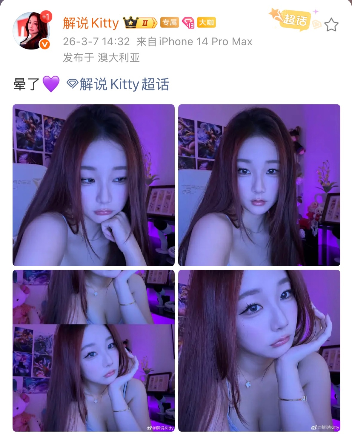又是羡慕Hans sama的一天!解说Kitty晒自拍:晕了💜