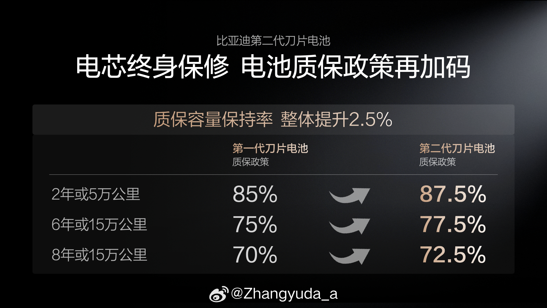 还有一点是电芯依旧是“终身保修”,电池容量低于77.5%就免费包换,这话非常有必要。