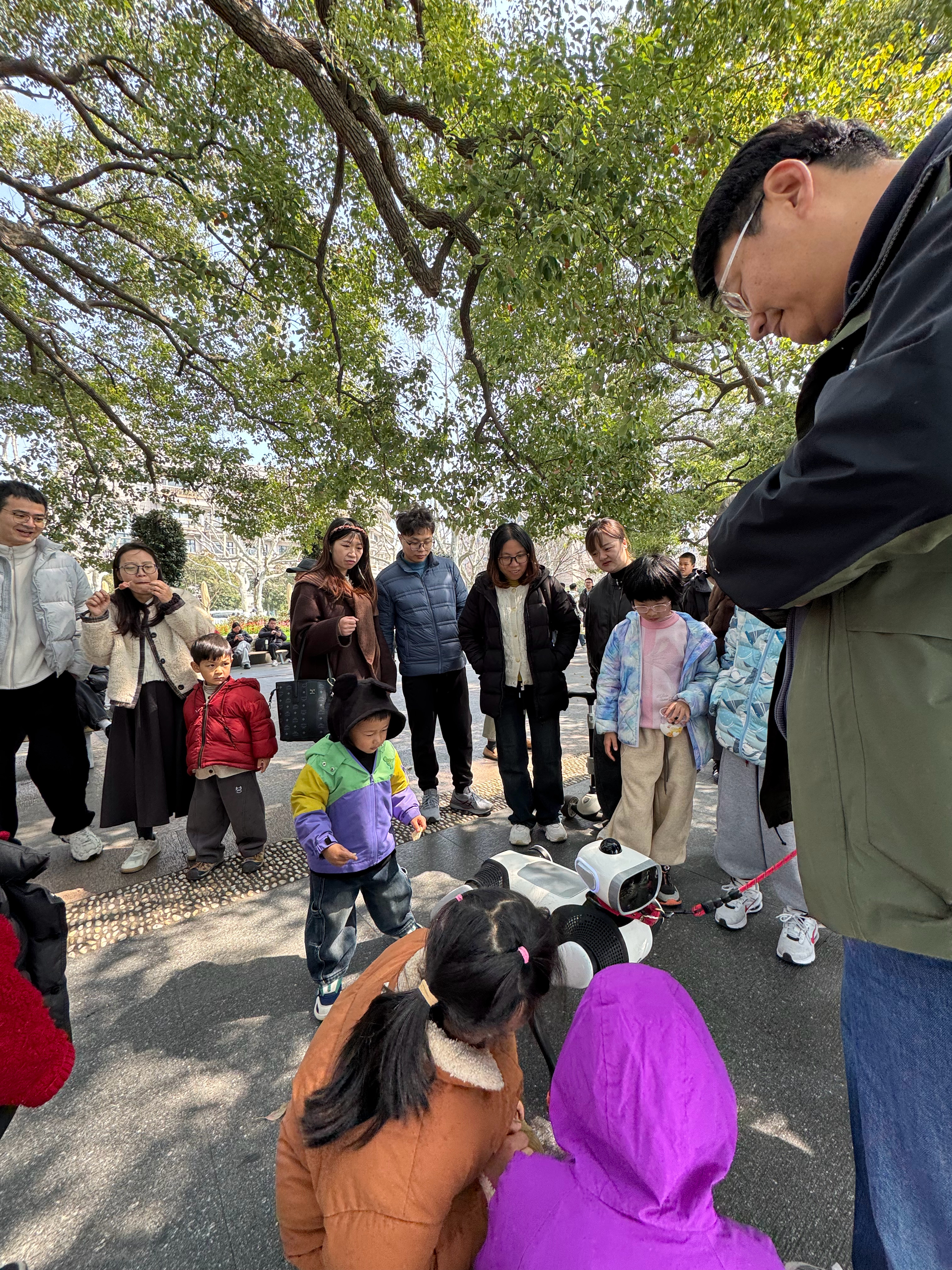 今天带大头来逛西湖,但凡停下来就是无数小朋友围上来,喜欢的不得了。