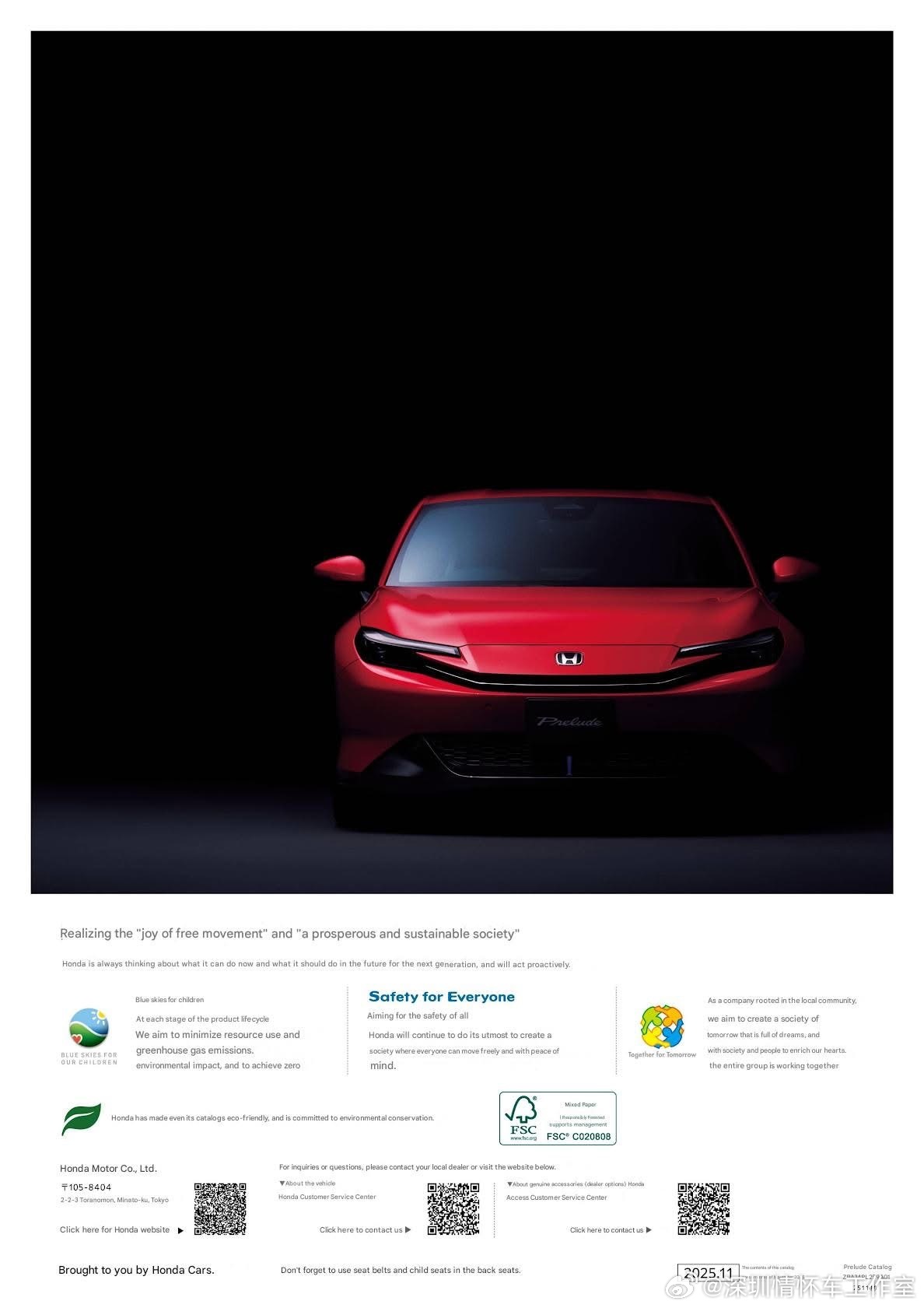 本田Prelude(彼露),2025年9月正式复活代号BF1,2.0L混动+双电机,综合200马力;无手动挡,配S+模式与拨片,主打混动+操控;三门溜背轿跑,与十一代思域同平台;定位对标丰田GR86,全球订单火爆,可惜,中国市场无缘。一句话总结:停产24年,2025年以混动轿跑回归,续写本田运动传奇。