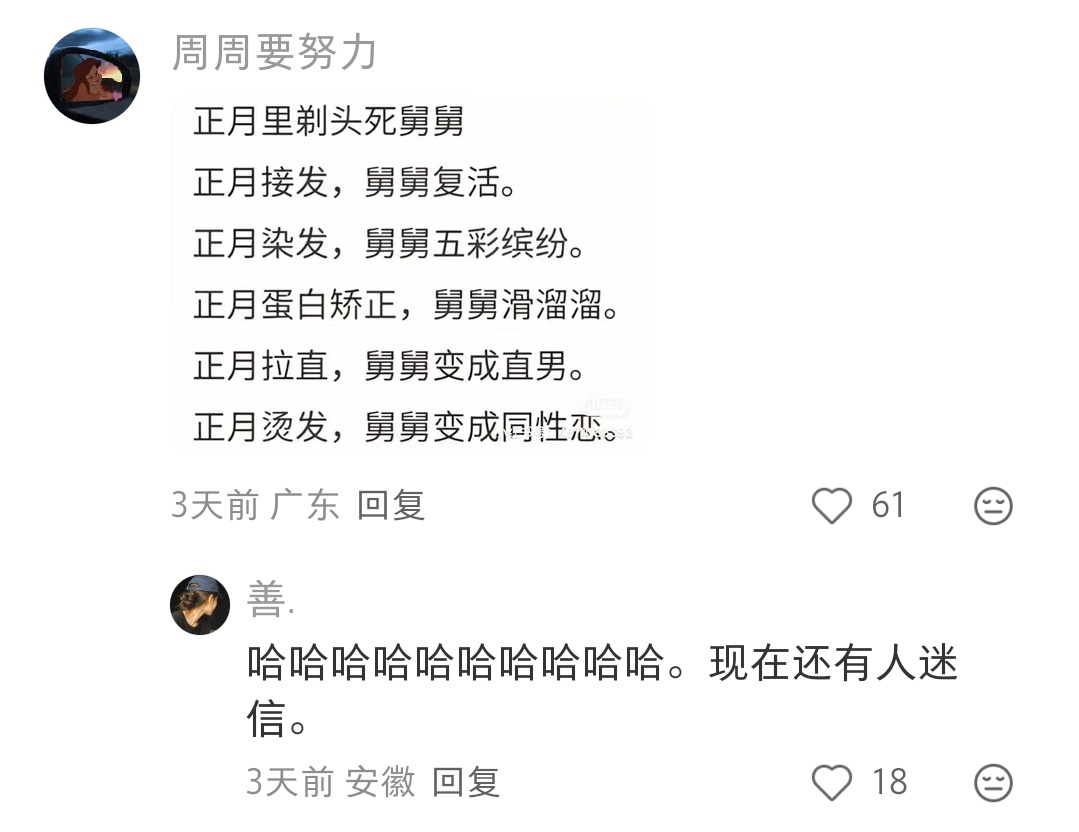 哈哈哈哈哈评论好好笑 正月理发