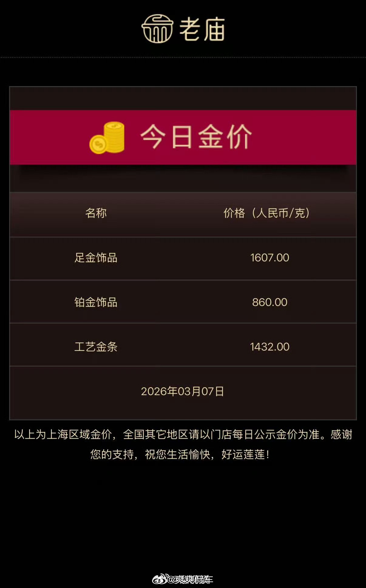 金饰克价涨到1607元真是飘忽不定啊