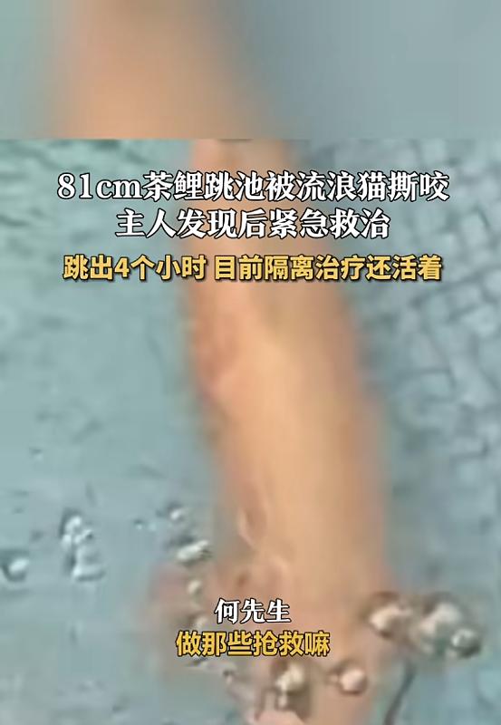 “天上掉馅饼了!”3月2日,四川遂宁,一男子养了条81厘米的茶鲤,在深夜时,茶鲤从水池里面跳了出来,恰好一只猫看见了这条鱼,面对在眼前的美味,小猫没有犹豫,直接对着它撕咬起来,等男子发现时,茶鲤已经浑身是伤!猫:感谢大自然的馈赠! 三月的四川遂宁,空气里那点儿潮湿的水汽,就足够把水底那些家伙折腾得坐立不安。 深夜,何先生家的院子静得吓人。二楼卧室里,他睡得正沉,根本没听见楼下那一声闷响——一团巨大的水花狠狠砸在了水泥地上。 整整81厘米长、16斤重的庞然大物,硬生生把自己从池子里抛了出来,直挺挺瘫在粗糙冰冷的岸上。 这是今年3月2日的子夜。对这尾被主人当宝贝养了两年多的茶鲤来说,这次跳跃可不是什么追求自由的浪漫戏码,而是在拼命逃生! 春天一回暖,水下那些看不见的细菌就跟疯了似的开始狂欢。沉睡了整个冬天的微生物集体苏醒,池水的酸碱度和溶氧量在无声无息间彻底崩了。 应激反应直接切断了鱼鳃的供氧,逼得这条巨鱼凭着最原始的求生本能发力一跃,想逃出这变成毒水的死地。 但它算错了落点。没有水域能接住它骄傲的鳞片了。对水生动物来说,离开水两三分钟也许还能扛,可它却在岸边生生熬了整整4个小时! 那是一场没有底线的窒息酷刑。厚重的身躯下面,是一点点被榨干的体液,周围只剩下越来越刺骨的冷空气把它包围。 就在这时候,一只橘猫借着墙角的暗光,慢悠悠地拐进了视线。 在流浪猫的世界里,生存法则向来就是走街串巷翻垃圾桶找吃的。但这一夜,它的日常图鉴被彻底颠覆了。 眼前这是一份堪称奇观的深夜大餐!水里那是16斤的游龙,岸上那就是任猫摆布的鲜美肥肉。 不需要任何试探,这种严重缺氧的巨鱼脱了水就是一块死寂的白板。猫直接下口了,锋利的牙尖贯穿了平时保养得油润光彩的鱼鳍。 清晨,阳光穿透院子的时候,何先生从梦中醒来。推门那一瞬间,心脏仿佛被人用冰锥狠狠扎了一下。 自己当祖宗供了两年的宝贝,那庞大雄壮的身躯周围铺满了凝固的血迹,原本完美的流线全变成了坑坑洼洼的撕裂伤口。 大多数养了多年鱼的人,面对这种惨状,估计已经在琢磨挖坑埋了。可就在那死一般的寂静中,何先生却死死盯住了它的半片侧脸。 鱼鳃正在像接触不良的电池一样,发生着极其微弱的振动。 这不是幻觉!那张拼死残留下的一丝生机还在顽抗!双手赶紧兜起这十几斤重冰凉黏腻的身躯,直接把它扔回了水里。 一阵让人神经紧绷的电流启动声响起。那是增氧泵开启后发出的粗重制氧嗡鸣。大股白色气泡像爆炸一般从管子里疯狂冒出来。 抢时间!只有用极端拉高溶氧浓度的爆冲方式,通过高流量的细密水珠,硬生生把它那严重萎缩的肺腑激活,才有一线生机! 这是一场与死神较量的72小时生死战。 如今,这只体无完肤的庞然大物已经被转移到独立的加湿隔离舱里,在相对安静的环境中慢慢愈合那些触目惊心的伤口。 别把这种事当成偶然的倒霉事故。对于那些伺候大型观赏宠物的人来说,这就是春天准时送来的一场劫难! 你要是不防范那些在春天温度里最先活跃起来的微小病菌群,不给自己的池子拉起一张防跳网,今天是你两年心血养出来的巨鱼,明天说不定就是那些你完全想不到的流浪动物天降下来享用的现成大餐。 机器里继续扑腾出密集的水声。只要它的鳃还在规律摆动,这场耗费极大心力才换回来的抢救奇迹,就有时间慢慢被冲淡成可以向朋友们炫耀的一次硬核救援传奇。