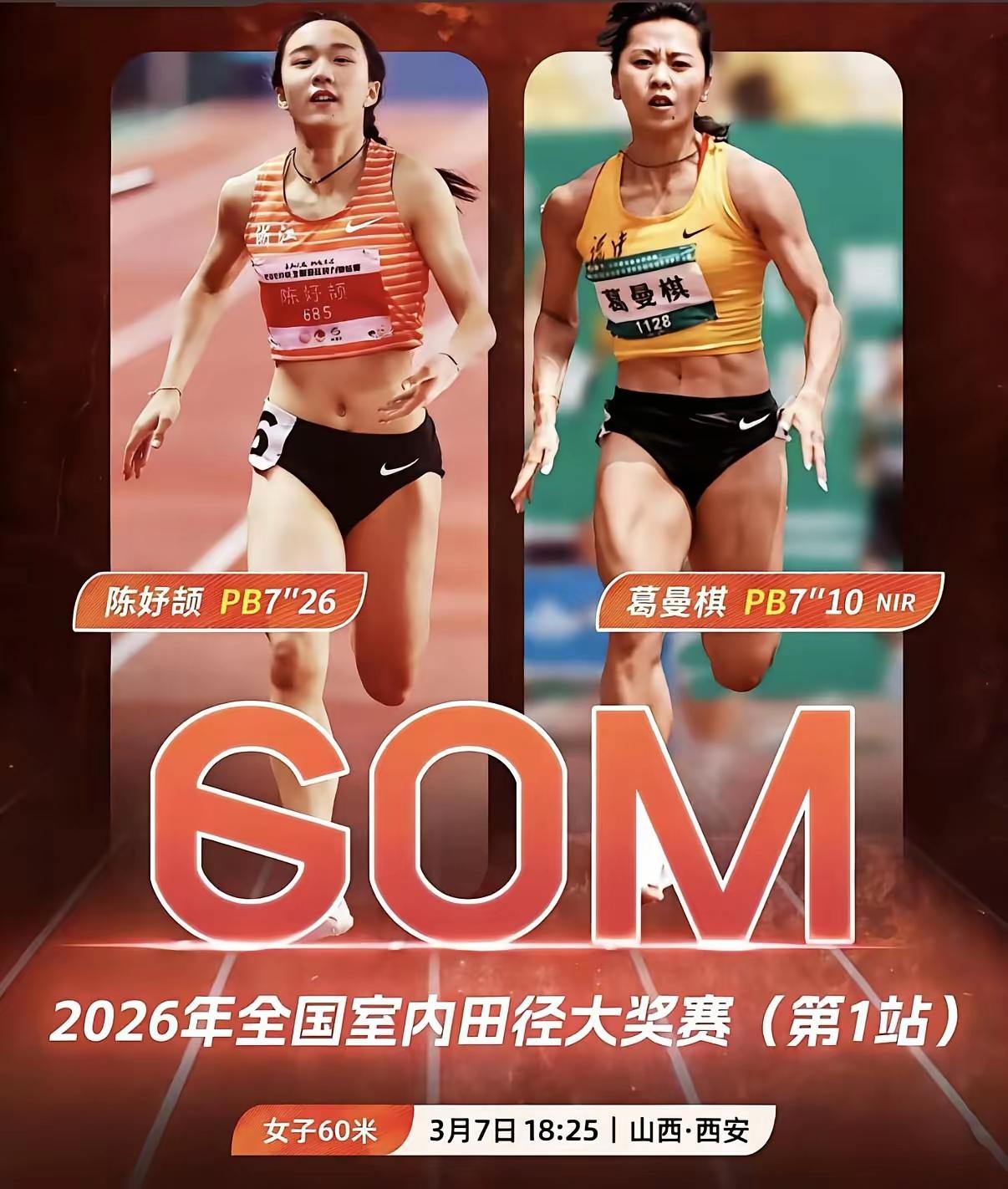 2026全国室内田径大奖赛1(西安),天才少女陈妤颉预赛成绩第一,全国60米纪录保持者葛曼棋预赛成绩排第三,将在今天下午两人同场竞技。不仅仅是两人的焦点大对决,前八名选手中新科亚洲冠军许佳璐,也应该是冠军的有力争夺者。中国短跑队的春天来了,期待着她们创造出好成绩。中国田径系列赛 赛潮田径大奖赛 十五运田径项目 十五运田径 十五运田径比赛 十五运田径赛