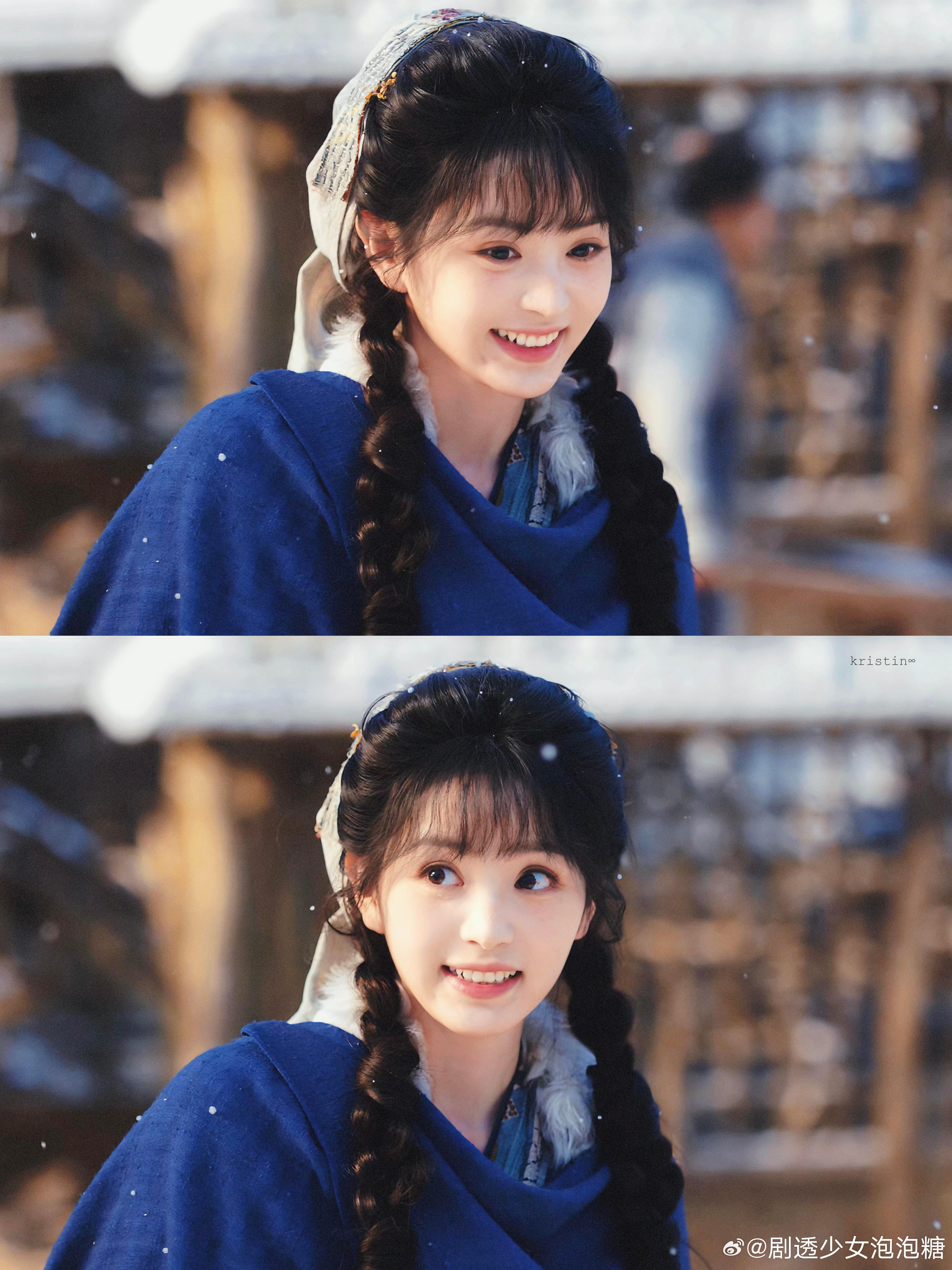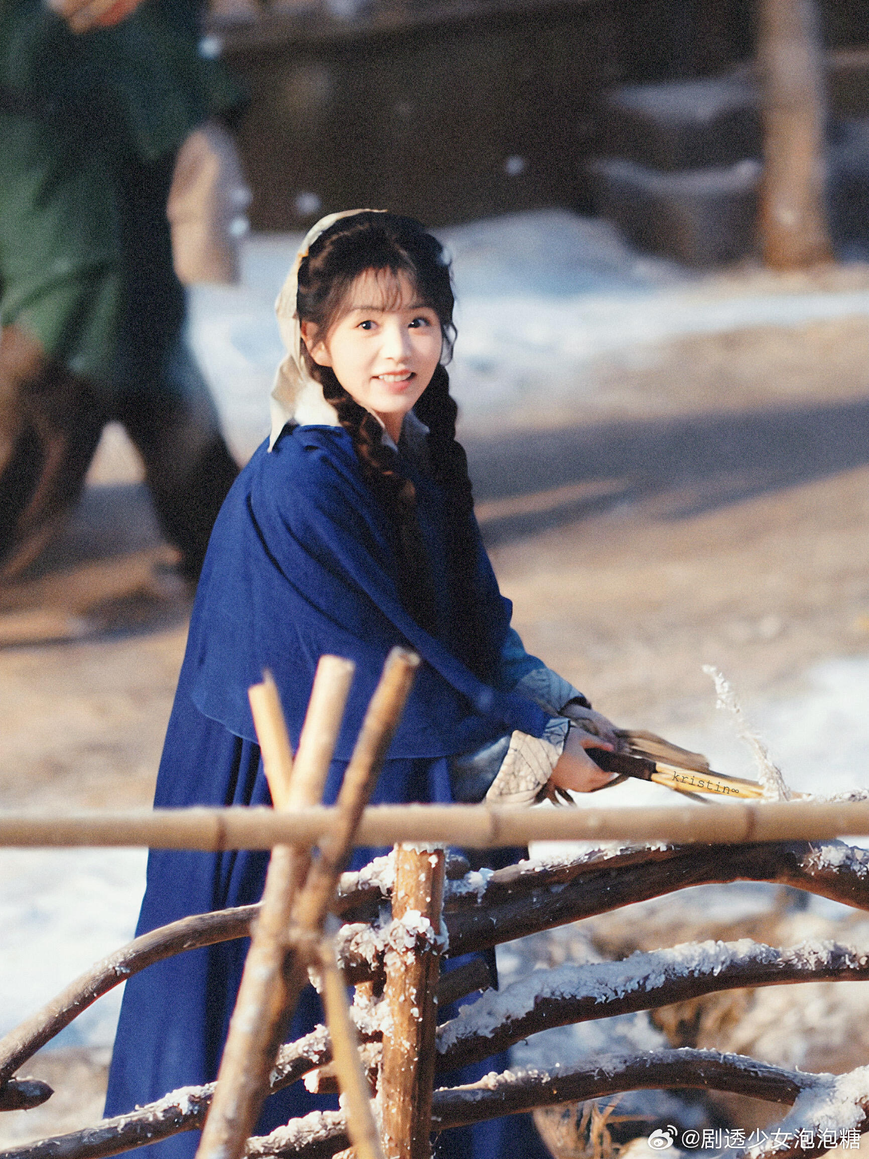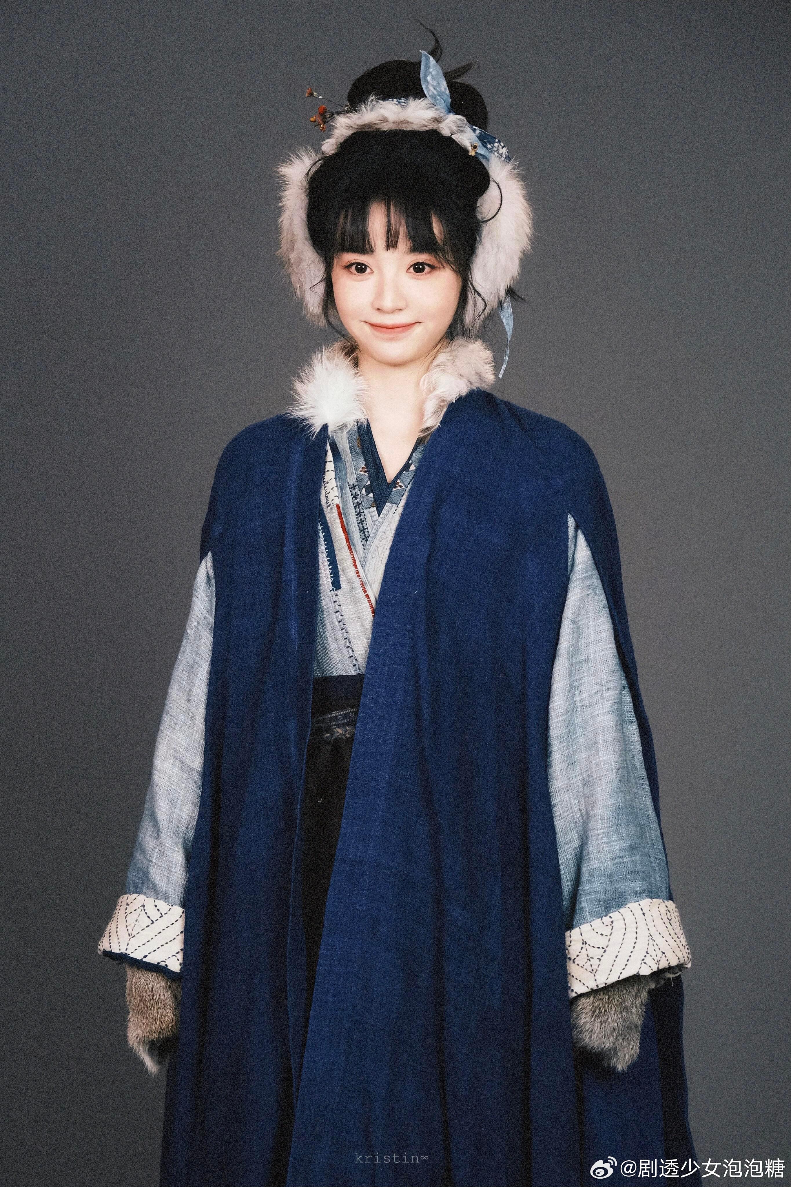 喜欢这个蓝色小萌人儿~长玉这套蓝色披肩穿着好漂亮!