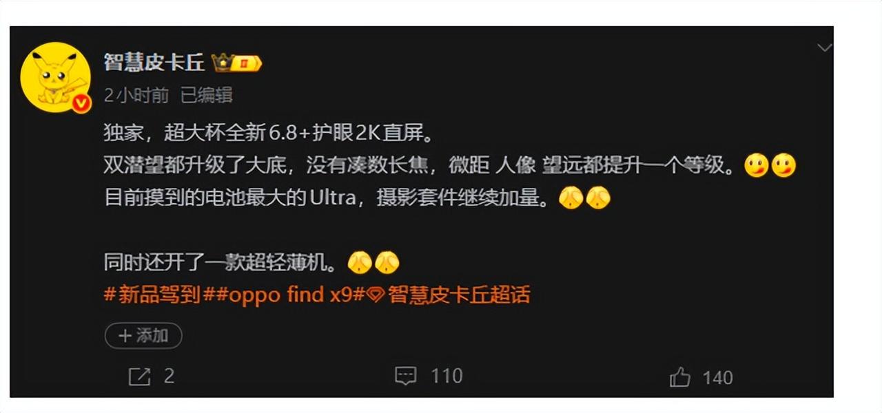 讲真,OPPO这相机味儿太冲了! 真心建议OPPO直接改行卖相机,别搁这儿“伪装”手机品牌了!这哪是吐槽,分明是给OPPO影像实力疯狂打call,它是真的在影像赛道修炼成精了! ZOL曝光的Find X9 Ultra参数,直接把人看愣——2亿像素主摄搭配双潜望长焦,妥妥的影像王炸,虽说6850毫安电池不算惊艳,但谁不知道OPPO的看家本领:颜值和快充,“充电五分钟,用机两小时”真不是吹! Ultra拖到2026年才亮相,明显是想等友商先出牌,上演“压轴戏”。但这操作风险不小,晚一步可能就被骁龙迭代甩身后,还得直面消费者热情降温。 价格估计5000-6000元,要在iPhone、三星、华为的高端战场虎口夺食,OPPO很清醒,不碰ios生态、不动华为情怀,专注把参数和续航做扎实,主打一个实用! Find X9 Ultra硬件卷到顶,软件优化才是胜负手!泛专业摄影爱好者、续航焦虑党、想拿旗舰装格调的朋友,可以冲;性能发烧友就劝退了,毕竟它主打的就不是极致性能,睡啦! OPPOFindX9Ultra 手机影像