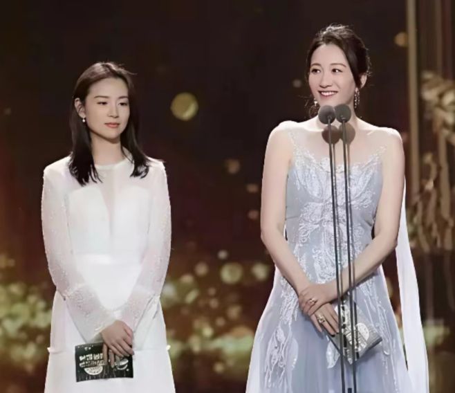 是谁说的? 董洁只需要淡淡的站在那里她就赢了, 她身边可是合影杀手李小冉啊 好吧我信了。 李小冉因为高挑的身材白得发光的皮肤, 都知道她是出了名的冷白皮, 合影占尽优势。 可是董洁这颗头真的是太特殊了, 还有她淡淡的百合花气质, 赢得毫不费力。