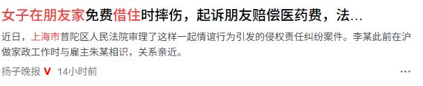 不是谁弱谁有理!上海,女子好友去医院看病,出于好心,让其在自家借住,谁知道好友居住期间,为了充电方便,在高低床的上铺,将头朝无护栏侧卧躺。半夜睡着后不小心从上铺跌落,经诊好友脊髓损伤,伤情较重,随后好友让女子自己负责到底,遭到拒绝,对方竟然一纸诉状将女子告上法庭,法院最后这样判了! 朱女士从床上猛地坐起来,冲进房间一看李某直挺挺躺在地上,脸色煞白,动都动不了。她吓得手都在抖,赶紧拨120,连夜把人送进医院。 诊断书出来的那一刻,朱女士整个人都傻了:脊髓损伤。可她万万没想到,更让她心寒的还在后头几天后,李某递过来一张诉状,把她告上了法庭! 往昔,李某于朱女士家中担任家政一职。在相处过程中,二人颇为投缘,彼此间的交流与互动和谐融洽,留下诸多愉快回忆。后来李某离开上海,没多久查出病来,需要频繁往返复查治疗。 朱女士动了恻隐之心,直接把家里钥匙交给她:"以后来看病就住我家,别花冤枉钱住酒店。" 这份善意绵延许久,宛如潺潺溪流,静静流淌。然而世事无常,谁都未曾料到,最终竟以这般意想不到的方式黯然落幕。 当晚,李某卧于高低床的上铺,手持手机,屏光莹然。他沉浸于虚拟世界,指尖轻触屏幕,似与那一方天地的奇妙世界亲密相拥。 为求充电之便,她侧身卧躺,头部朝向那无护栏的一侧。如此姿态,只为能更便捷地获取电力,虽看似平常,却也凸显了对便利的追求。结果睡着后翻了个身,人就直接从床上摔了下来,当场动弹不得。 李某躺在病床上算了笔账:本来就有病要治,现在又多了脊髓损伤,医药费、康复费像无底洞一样往里填。 于是她找到朱女士,理由听起来也不是完全没道理——你这房子平时也租给别的家政人员,带经营性质吧?高低床护栏又矮又短,不就是安全隐患?我在你家受伤,你得负责! 她确实偶尔把房子短租给待业的阿姨过渡,但这次让李某住,纯粹是朋友情分,一分钱没收!况且,这张床为家中亲人所用已历多年,其间安稳顺遂,从未有过任何差池。事发前几日,李某尚卧于客厅沙发。事发当晚,她自行挑选了上铺,且特意选择了无护栏的一侧安睡,全然未顾及潜在危险。 朱女士拒绝了赔偿。李某二话不说,直接把她告上法庭。法院的判决书里,有几个关键认定,每一条都打在了点子上: 第一,没证据证明朱女士让李某住是为了赚钱,这不是经营行为,她不负经营者的安全保障义务。 李某作为完全民事行为能力人,自述并非首次睡上铺,却选择头朝无护栏一侧而眠。此次跌落之事,实因自身疏忽大意所致,当属过失之举。 第三,床铺本身不存在明显不合理的危险,护栏高低和受伤之间没有必然因果关系。第四,朱女士事发后第一时间送医,已经尽到必要救助义务。 最终,法院驳回李某全部诉讼请求!这份判决在网上直接炸开了锅。有人感慨,李某着实令人怜悯。脊髓损伤这一伤痛,或许会如影随形一生,从情感层面而言,着实值得给予同情。 但更多人拍手叫好:"判得漂亮!最烦这种我弱我有理,出事就反咬一口的。" "帮人是情分,不赔是本分。人家给你钥匙、让你免费住,已经是天大的情分,没义务保证你绝对不出意外。" 说实话,这起案子的意义,远不止一张判决书那么简单。《民法典》第1165条写得明明白白,侵权责任的构成需要四个要件:损害事实、违法行为、因果关系、主观过错。 朱女士无偿提供住所,并无过错,亦未实施侵害之举。李某摔伤乃其自身抉择所致,从法律层面而言,与朱女士无因果关联。 否则,帮人借住、帮人捎车、帮人担保,一旦出事,帮忙的人反倒成了背锅侠。久而久之,谁都不敢轻易伸出援手,整个社会的信任都会被消耗殆尽。那把交出去的钥匙,本该是人与人之间最朴素的信任。但愿这份判决,能让它继续被传递下去,而不是让好人寒了心。