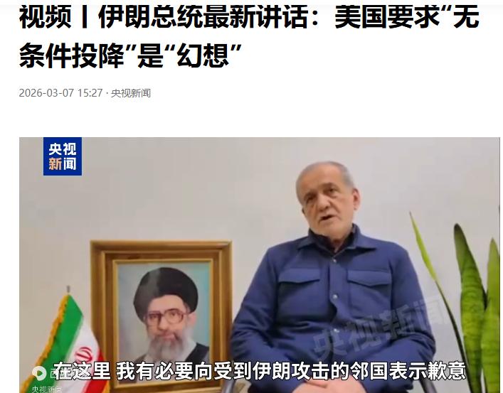 别说投降了,歉都别道。 道个屁的歉,只要美军敢用这些军事基地向伊朗发起进攻,就理所应当地进行反击。 伊朗总统:绝不可能无条件投降 现在这个做法是对的,就盯着美军的军事基地干,把美国在中东的所有军事基地都打没了,以色列就再也嚣张不起来了。 不过他说这个话也是有原因的。 毕竟小巴也下场发声了,他们才和沙特王爷签了保护协议。狗大户给了钱的,关键时刻还是得上。 如果伊朗攻击狗大户,小巴就必须要下场。那小伊面对的就不是两个核国家,而是三个了。 不过小巴话说得很艺术,只打美军基地他们是不管的,但是如果打其他地方就不行了。 狗大户应该还是很满意的。 这一仗打完,估计美国在中东的基地也就寥寥无几了。 中东都能打成这样,西太他们还能守得住? 还不如直接谈好后撤至第三岛链,至少还能勉强维持住一些尊严。 点右上角关注我,我们一起去看这个魔幻的世界