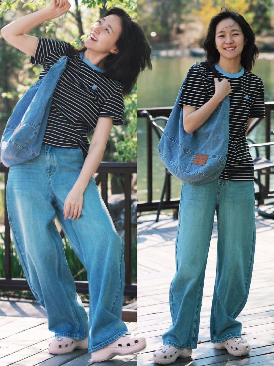 焦俊艳是什么宝藏女孩呀🤩舒适穿搭模范生! 焦俊艳简直是穿搭界的一股清流!衣品没有繁杂的搭配,却处处透着舒适与自在。 条纹T恤搭配阔腿牛仔裤,简约又经典,随性挎上一只大包,仿佛在宣告“舒适才是王道”。这种简单又惬意的穿搭,无论是日常出行还是休闲小聚,都能轻松适配~ cr:焦俊艳 焦俊艳.是哈哈你喜欢的明星吗同款.是哈哈你喜欢的明星吗私服.女是哈哈你喜欢的明星吗穿搭.日常穿搭.跟着是哈哈你喜欢的明星吗学穿搭.夏日穿搭.ootd每日穿搭.