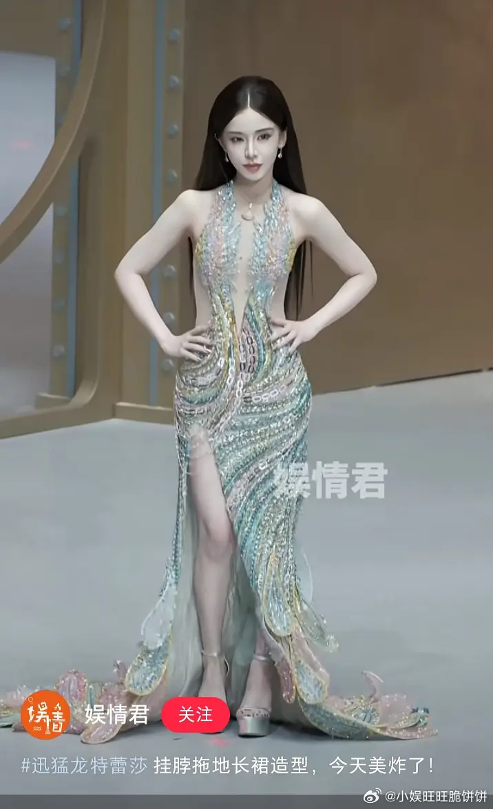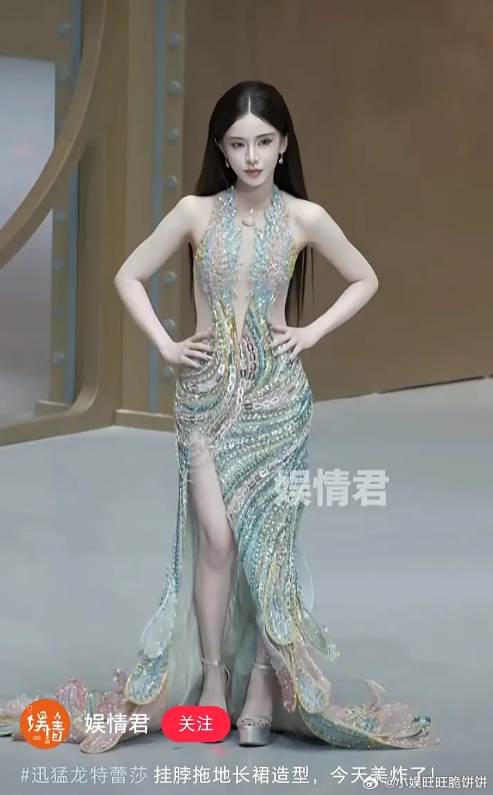 李一桐木格窗漏进的月光把亮片裙织成流动的河她斜倚在朱红的栏上发梢垂落,像
