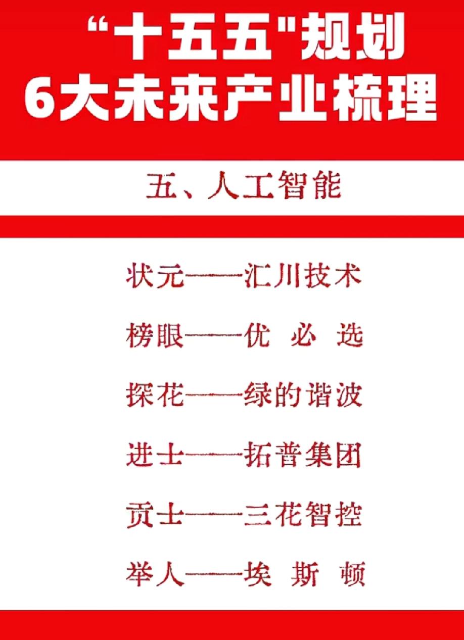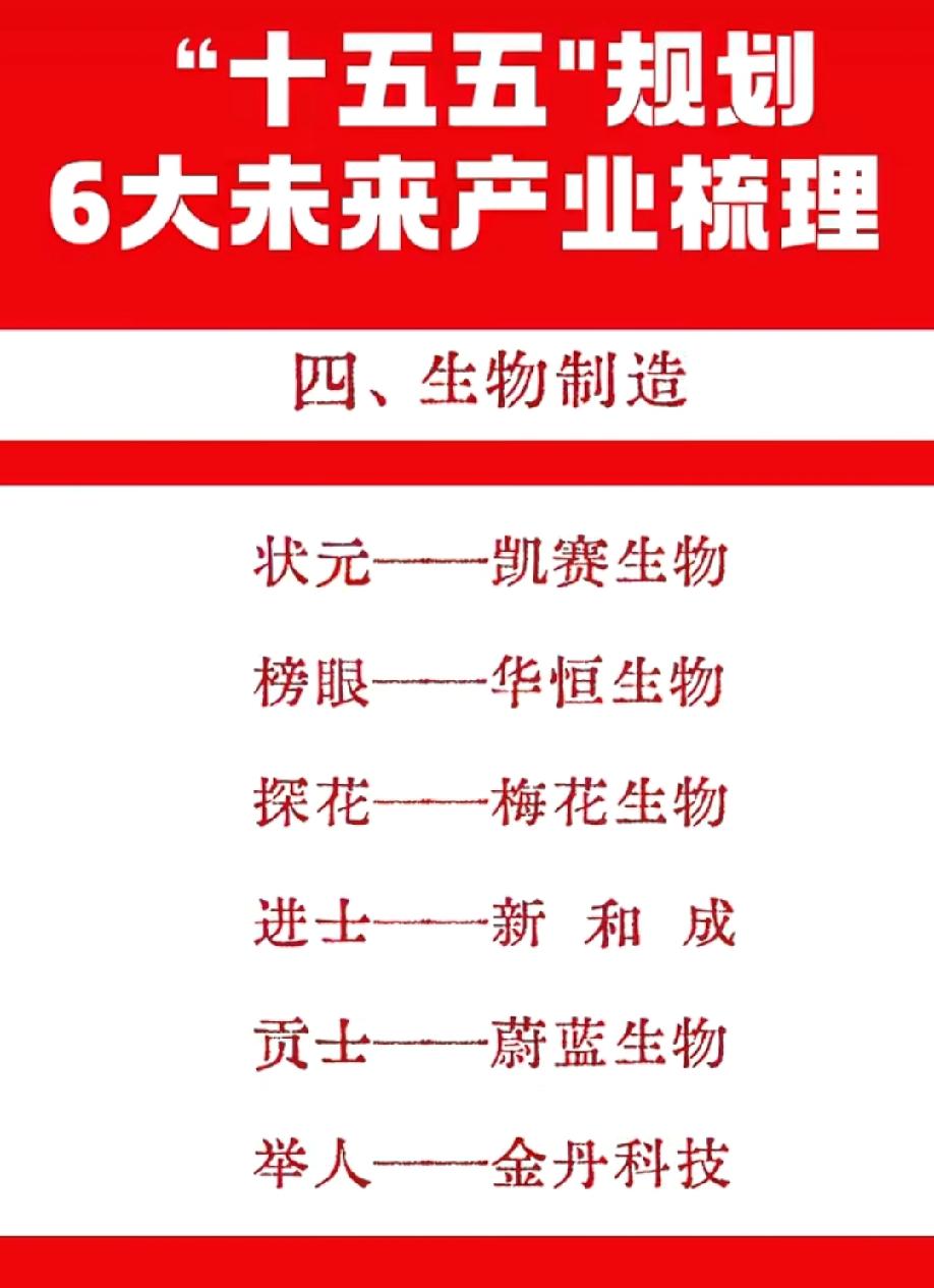 🔥“十五五”规划6大未来产业龙头榜出炉! 从量子科技、脑机接口到氢能与核聚变,再到生物制造、人工智能与6G通信,每一条赛道都是未来十年的核心风口。这份“状元、榜眼、探花”名单,是把握时代红利的关键线索,看懂方向,才能踩对节奏。 6G通信是下一代数字经济的核心基础设施,聚焦空天地一体化、太赫兹、通感一体等前沿技术,涵盖卫星通信、光模块、射频器件、核心设备等产业链环节,是科技赛道中长期确定性极强的方向,承载着未来十年数字互联与智能升级的关键使命。 生物制造是以合成生物学、微生物发酵为核心,用可再生原料替代化石资源,在温和条件下绿色生产医药、材料、化学品、食品的新一代制造方式;是“十五五”重点未来产业,兼具双碳、国产替代、高成长属性,华恒生物、凯赛生物、华熙生物等龙头领跑。 ⚠️风险提示:本文仅为信息分享,不构成任何投资建议,市场有风险,投资需谨慎。