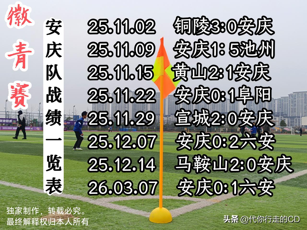 徽青赛,安庆0:1六安。 安庆队遭遇8连败、一场未胜,排名垫底或不可避免。 下午,在一场徽青赛排名争夺赛中,安庆队主场0:1负于六安队,遭遇开赛以来的第8场败仗,8场比赛进2球失18球。这是两支球队本赛季第二次交手,上一次是在小组循环赛第6轮,安庆队同样主场负于对手(0:2)。 3月14日,两支球队将移师六安市体育中心再战一场——两回合胜者争夺乙组第5名,败者角逐乙组第7名。 安徽身边事 徽青赛 提到安徽,你首先想到的是什么 是什么让你开始喜欢足球的