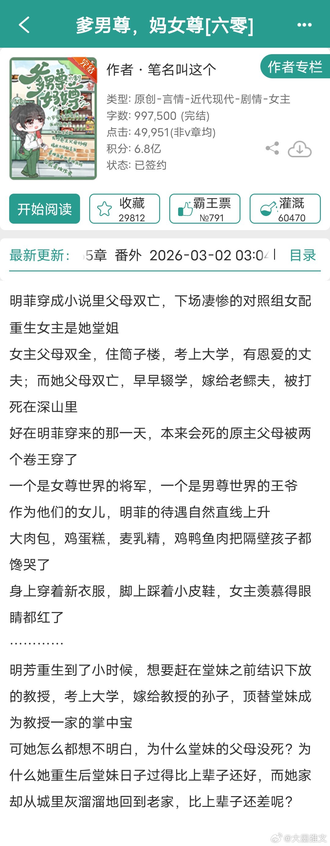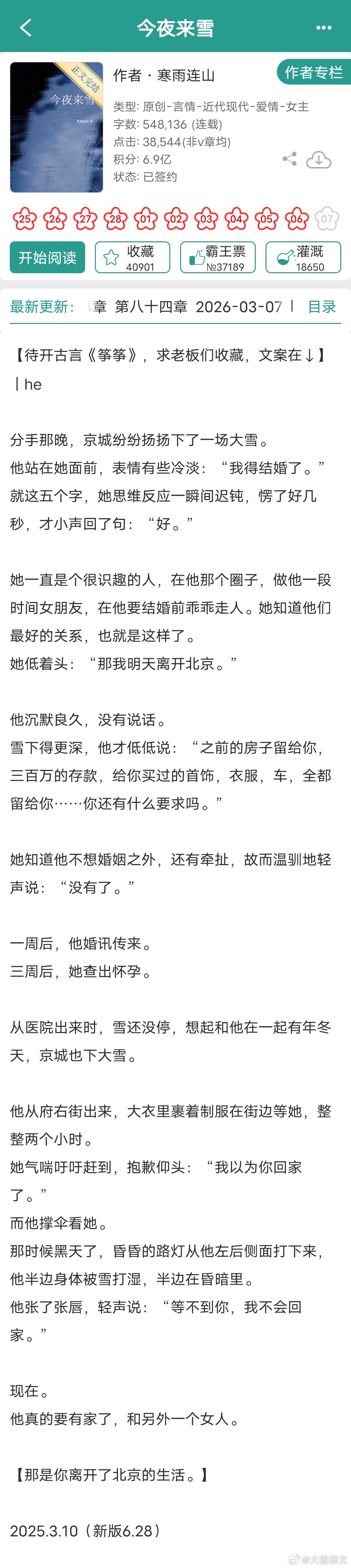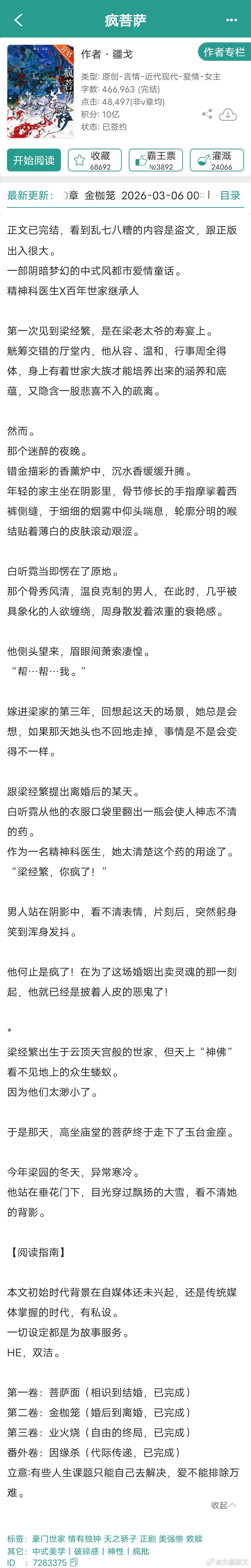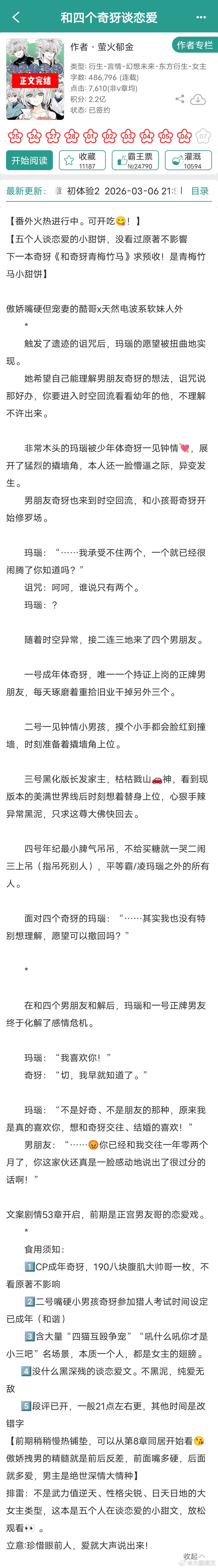 【言情最新完结】看文案8挺有趣的上期:网页链接1《暴君听到了我的心声》田园泡2《疯菩萨》疆戈3《今夜来雪》寒雨连山4《从零开始的修仙家族模拟器》与神同行5《和四个奇犽谈恋爱》萤火郁金6《惊!修仙界天骄全员塌房!》宵行十里7《在万国将餐饮业做大做强》鹿蜀X8《【娱乐圈】少爷又怎么了》千千千年9《爹男尊,妈女尊【六零】》笔名叫这个言情小说推荐推文