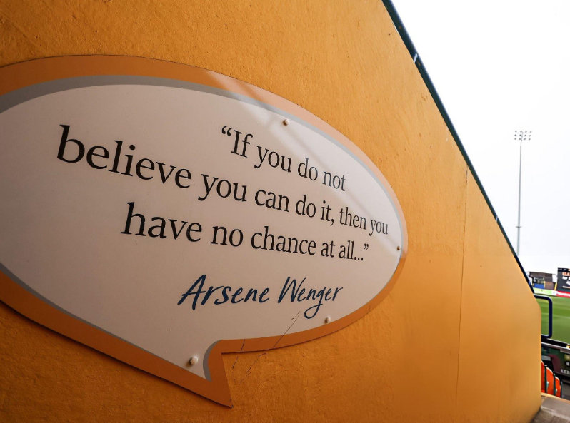 在曼斯菲尔德的球场展示了前阿森纳主教练温格的一段话。 ❤️