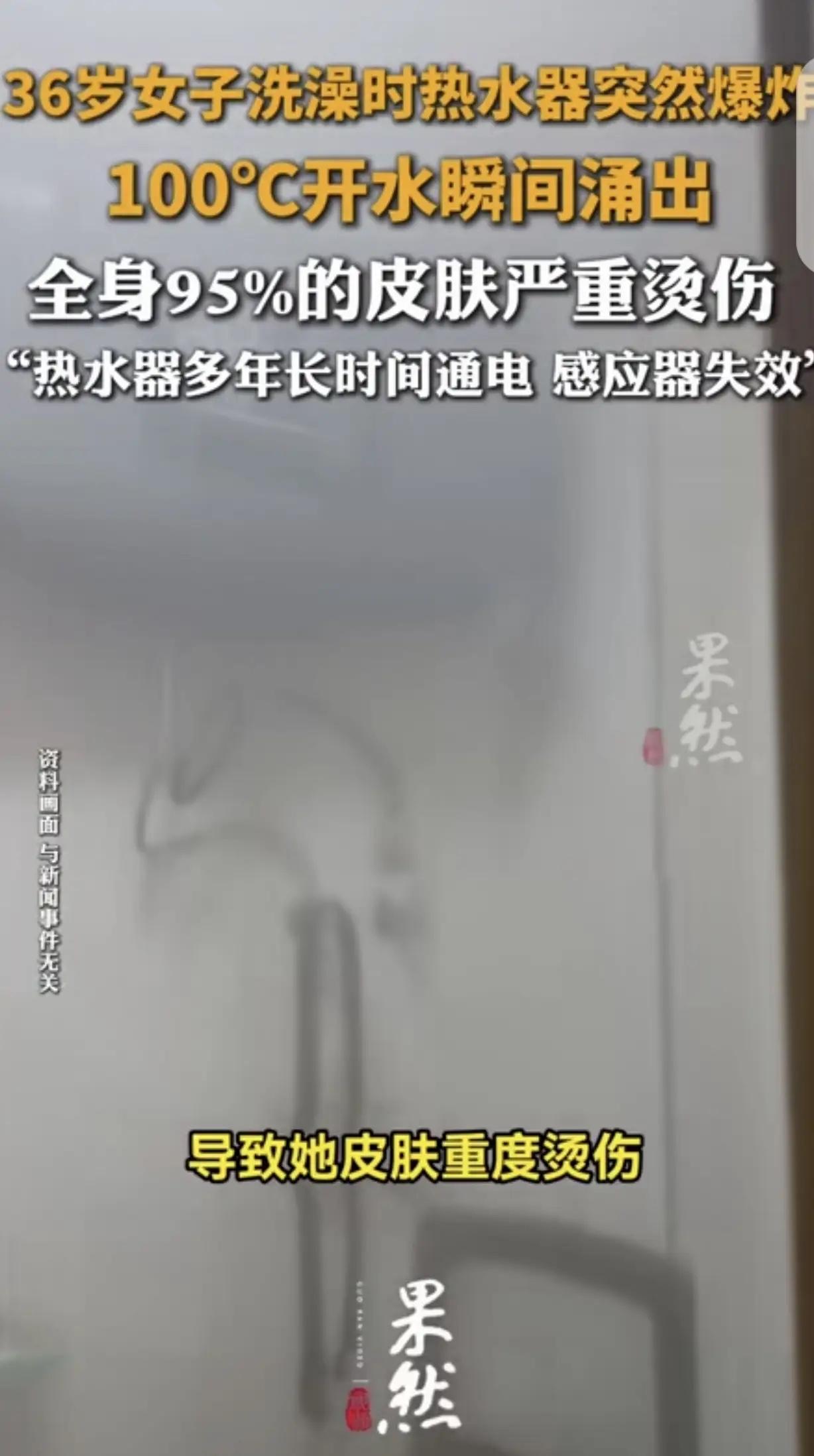 “悲剧还是发生了!”陕西西安,一36岁女子在浴室洗澡,她一丝不挂正洗的舒服时,突然,一声巨响,热水器爆炸,100℃开水瞬间兜头淋下,把她烫的皮开肉绽,全身95%皮肤严重烫伤,医院好几次都下了病危通知书,但女子经过多次手术,还是从鬼门关爬回来,家属本想找热水器厂追责,一查事故原因,都傻眼了。 那天晚上,高女士像往常一样走进浴室。谁也想不到,墙上那台安安静静用了八年多的储水式电热水器,会突然变成一颗炸弹。温控感应器悄无声息地失效了,设定好的四十多度温水,在密闭的内胆里疯狂加热,一路飙升到一百度。 压力到了极限,“嘭”的一声巨响,热水管炸开了。滚烫的开水浇在她身上,剧烈的疼痛让她几乎昏厥。全身95%的皮肤,被严重烫伤。儿子听到爆炸声,冲过来砸开门,看到的是母亲倒在地上、全身通红的惨状。救护车把她送进西安交通大学第二附属医院。医生一看这么大面积的特重度烫伤,多个器官功能都开始衰竭,生命危在旦夕。 病危通知书下了好几次。烧伤科、重症医学科、麻醉手术科……多个科室的医生接力抢救。清创、抗感染、植皮,一场又一场大手术。高女士在鬼门关前挣扎了好几回,硬是凭着顽强的生命力,和医护人员的不放弃,一点点爬了回来。 人能救回来,是不幸中的万幸。可家属心里憋着一股火,想找热水器生产厂家讨个说法。但事故原因一查,问题出在那台热水器本身。它已经服役了八年多,国家虽然对电热水器没有强制报废年限,但行业普遍建议的安全使用期限就是八年。超龄服役,内胆腐蚀、线路老化、关键部件失灵的风险会大大增加。 这次爆炸的直接原因,就是长期通电使用导致温控感应器彻底坏了。它本该在水温达到设定值时自动断电,但它失灵了,让水一直烧,直到变成沸腾的高压“炸弹”。泄压阀可能也因为长期未检查而堵塞,没能及时释放压力。 是高女士一家忽视了家电的“寿命”,没有定期检修和更换?还是产品本身存在设计或制造缺陷?这需要专业机构进一步鉴定。但一个无法回避的事实是,很多家庭都和高女士家一样,觉得电器“没坏就能一直用”。 一台热水器,每天默默工作,我们早已习惯了它的存在。谁会想到,这个提供温暖的伙伴,会因为老化而变成身边的隐形杀手?它不会提前大声警告,只会在某个毫无征兆的时刻,用最惨烈的方式宣告“退休”。 家电不是永动机,它们有安全寿命。尤其是电热水器、燃气灶这些涉及水、电、气的大家伙,定期请专业人员检查,到了年限果断换新,这不是浪费,是对家人生命安全最基本的负责。 洗澡前加热,洗时断电;每月手动试一下泄压阀是否正常;每两年检查更换一次镁棒……这些看似麻烦的小事,关键时刻能救命。别让疏忽和侥幸,酿成无法挽回的悲剧。 各位读者你们怎么看?欢迎在评论区讨论。