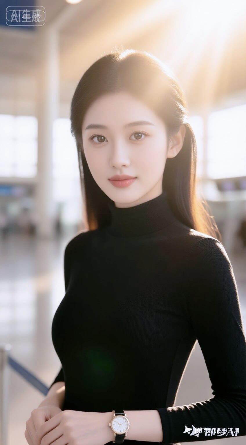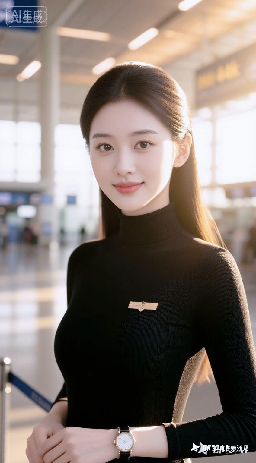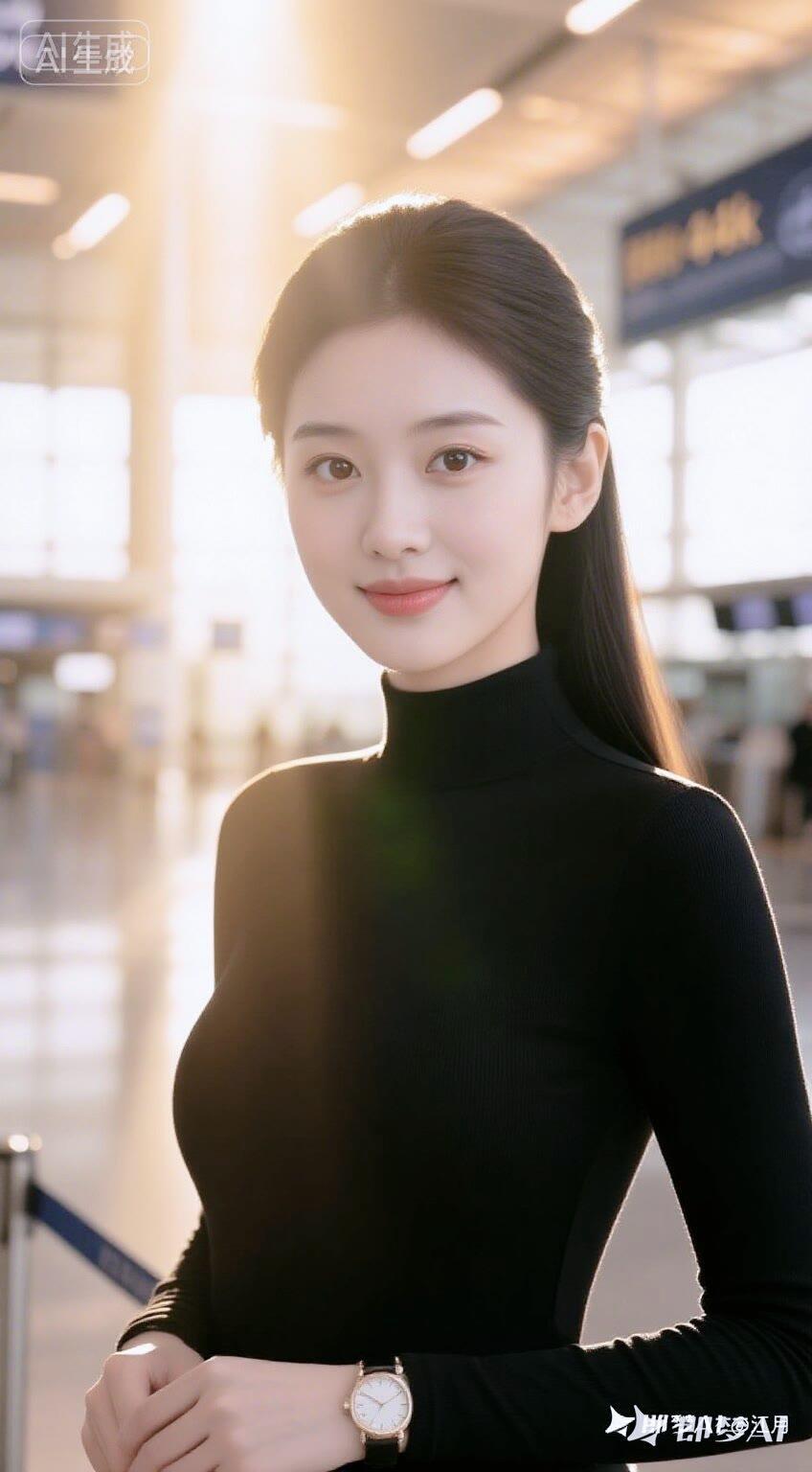 海边漫步,黑裙飘逸,海风轻拂,美不胜收。