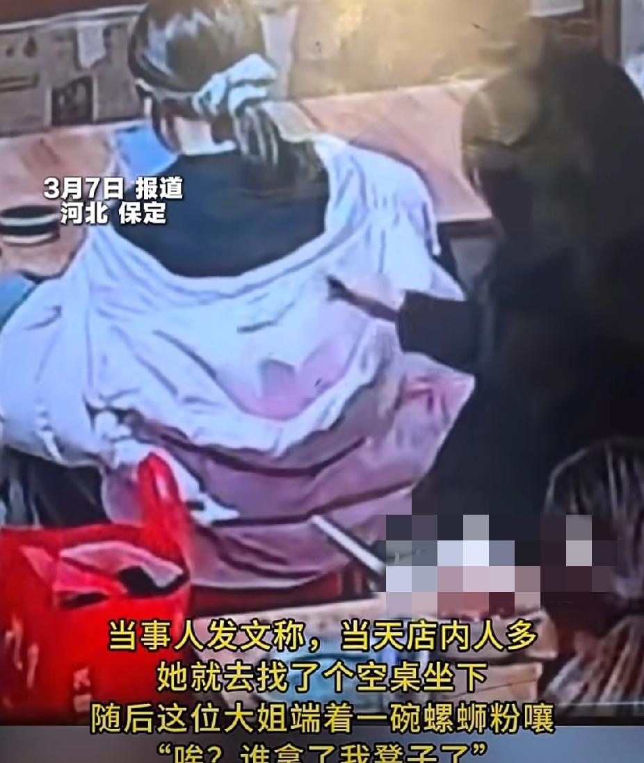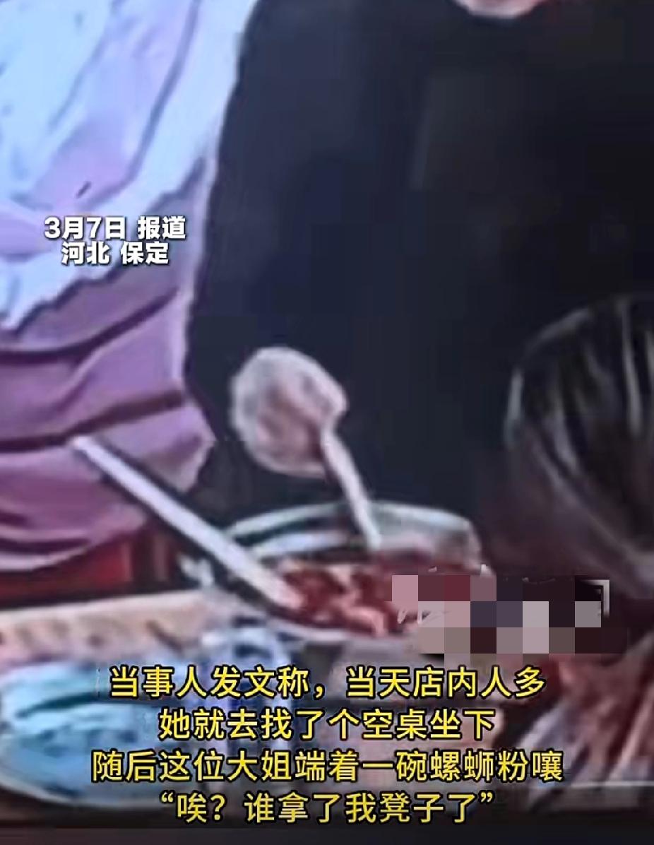没素质!女子误拿了另一女子凳子后急忙返还致歉,却遭对方将螺蛳粉汤偷倒进帽子!监控完整拍下全过程! (信息来源:新晚报) 3月7日,河北保定的一家螺蛳粉店走进来一名女子。女子进店后找了一个空位置坐下,随即,一名黑衣服的大姐端着一碗螺蛳粉走过来,大声说道:“唉?我的凳子呢?我的凳子怎么没了?” 女子这才意识到自己现在坐的这个凳子是刚才这位大姐坐的,于是女子赶紧将凳子还给大姐,并表示:“不好意思,我以为这里没有人呢。” 大姐没有理会,顺势就坐下了,而女子则又拿了一个凳子坐在大姐后面桌子与大姐背靠背的位置。 结果这位大姐在吃螺蛳粉时频繁向后看向女子,还几次用汤勺盛出螺蛳粉的汤倒进女子的帽子里,这一幕被监控完完整整的拍了下来! 不得不说,这位大姐的做法也太没有素质了!对方明明已经道歉并归还了凳子,为什么还要不依不饶,以这样的方式来报复别人呢?况且对方也不是故意的!也并没有给她造成任何的损失,这种做法真的让人感觉非常难以理解! 大姐的行为明显是故意的,如果女子对其追责的话,恐怕大姐少不了要赔偿女子的衣服了!我觉得大姐至少要赔给女子干洗衣服的钱,再好好接受批评教育才行!对此,你怎么看呢? 没素质