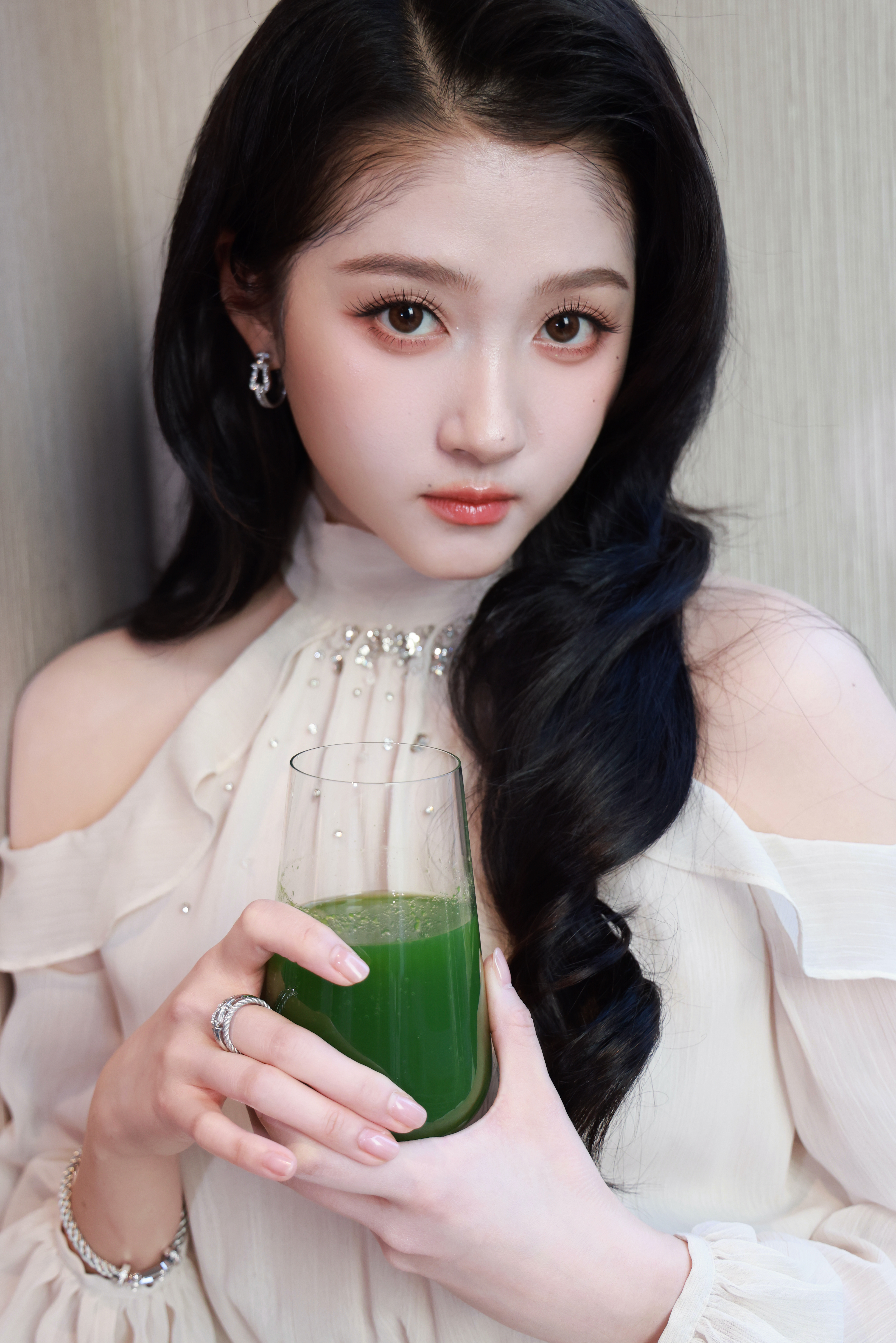 李一桐木格窗漏进的月光把亮片裙织成流动的河她斜倚在朱红的栏上发梢垂落,像