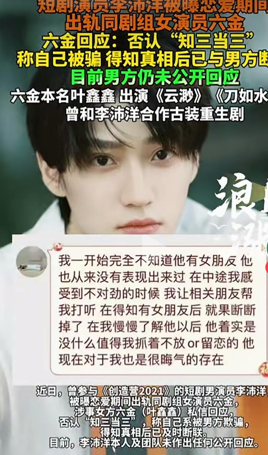 短剧圈演员塌房比拍的剧还狗血!李沛洋恋爱期出轨同组六金,女方光速喊冤说自己被骗,结果网友一扒时间线,脸都被打肿了,这出戏演得比他俩拍的古装剧还精彩! 李沛洋这操作真的惊得我下巴掉地上!和女友谈了快一年,俩人在杭州网红圈都是公开的一对,家里装监控、手机绑定位,主打无死角安全感。 结果他愣是借着吵架冷战、离组独处的借口,杭州横店两头跑,在监控眼皮子底下和六金搞到一起,这反侦察能力,不去演谍战剧都屈才了! 更炸裂的是,这货根本不是第一次翻车!前女友的朋友直接锤他是出轨惯犯,过往恋爱就有不忠前科,合着深情男主人设全是演的? 六金这边倒是反应快,立马跳出来撇清,说李沛洋骗她早已分手,还编了个女友重病甩不掉的借口,自己得知真相就火速断联,装得楚楚可怜。 可网友的手速比她的嘴还快,一扒时间线全对不上!她8月还在社交平台喊李沛洋老公,俩人暧昧互动不断,那时候她还和谈了七年的前男友同居没分手! 这操作看得我头都要秃了,合着俩人都不是单身,玩的是双向奔赴的劈腿?现在倒好,只有六金一个人出来喊冤,这受害者人设立得也太勉强了吧! 咱就说短剧圈这点事,谁还不清楚啊?真情侣扎堆,演员N搭炒CP是常态,同组拍戏天天朝夕相处,低头不见抬头见,能不知道对方有没有对象? 人家曾辉韩雨彤十二搭熬成真爱,于龙杨咩咩26搭直接领证,都是光明正大的甜,就他俩偷偷摸摸玩阴的,把观众当瞎子耍? 最气人的还是李沛洋,全程装死沉默到底!爆料的私信读了不回,社交账号照常更新,仿佛这场出轨风波跟他半毛钱关系没有,怂得我牙都痒痒! 他经纪人更离谱,不回应出轨事实,反倒联系爆料人要求冷处理、藏信息,这护犊子的样子,直接把网友的怒火拉满,评论区全是骂声! 我邻居家姑娘也是做短剧的,和同事搭戏才三天,全剧组都知道她有男友,更别说短剧圈就这么点小圈子,扒信息比咱吃瓜群众快十倍! 六金说自己完全不知情?骗鬼呢!搁咱普通人身上都不可能的事,到她这就成了受害者,这话谁信啊? 这瓜还没完,又有女网红跳出来锤李沛洋!说2023年他就主动要联系方式,骗人家自己是单身,约完就找借口跑路,这货简直是短剧圈时间管理天花板! 吃到这我算是看明白了,李沛洋这波是把撒谎刻进DNA了,对着多个女生花式编瞎话,把所有人都耍得团团转,颜值再高也遮不住骨子里的渣! 六金这边呢,除了嘴说被骗,半点儿实锤证据都拿不出来,连张聊天记录截图都没有,与其说她被骗,不如说她是借着不知情洗白,算盘打得噼啪响! 咱普通人谈个恋爱都知道先摸清对方底细,更何况是混迹娱乐圈的演员,说自己被蒙在鼓里,多少有点把大家当傻子糊弄了。 短剧圈的真情侣从来都是光明正大,只有心术不正的人,才会把剧组当成劈腿的温床,把演戏的套路用在感情里。 姐妹们,你们觉得六金是真的被骗了,还是借着不知情洗白自己?李沛洋全程沉默,是不是已经默认了自己的渣?评论区赶紧唠唠,我蹲个大家伙的看法,点赞收藏的姐妹天天吃新鲜瓜!