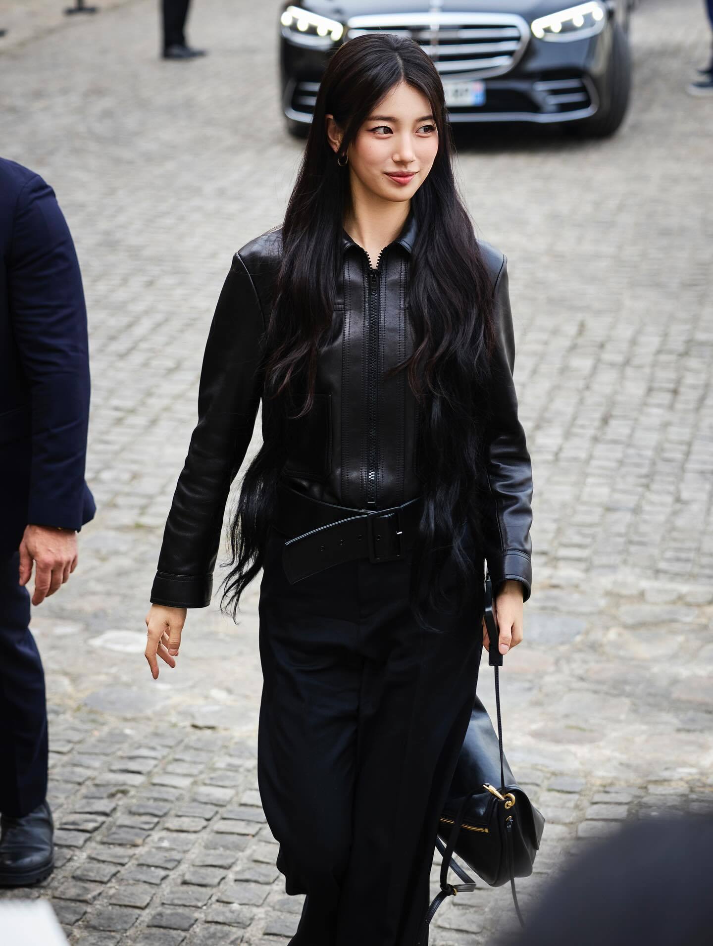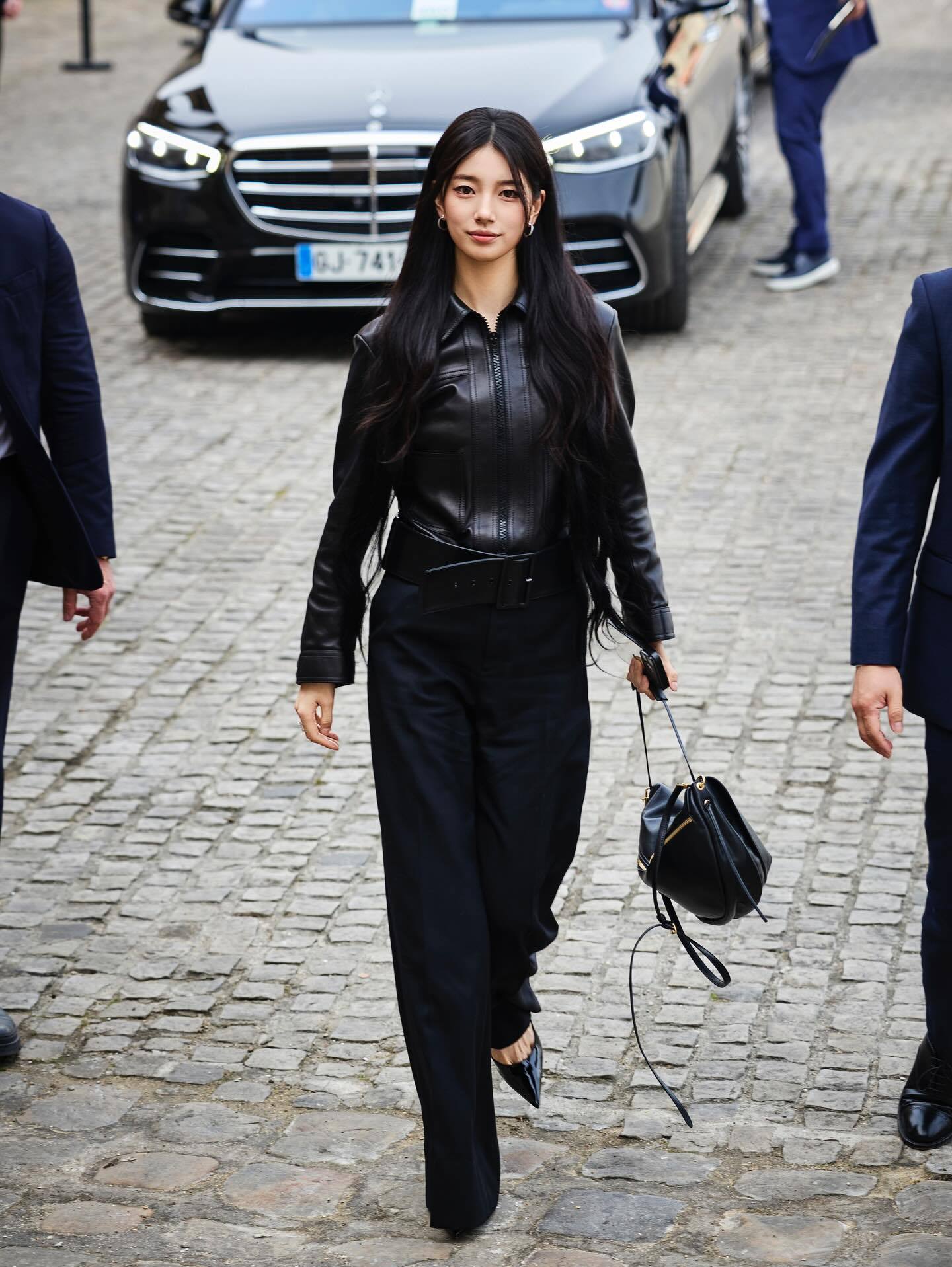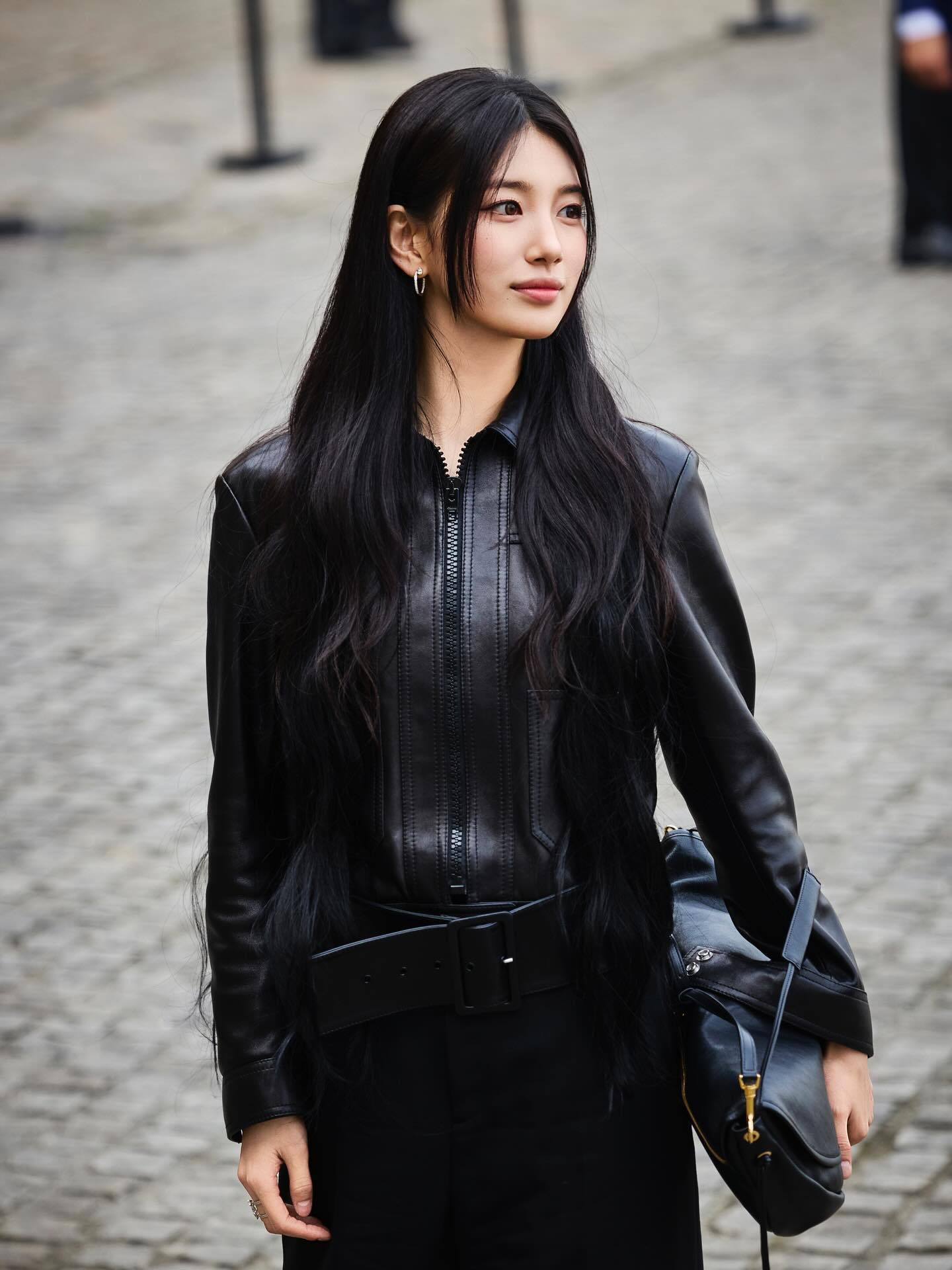 拉链皮衣 + 尖头高跟鞋,两件时髦单品就能把CELINE女郎的气质稳稳拿捏住,再搭配一条带点女性优雅气质的阔腿长裤完成All Black造型🖤