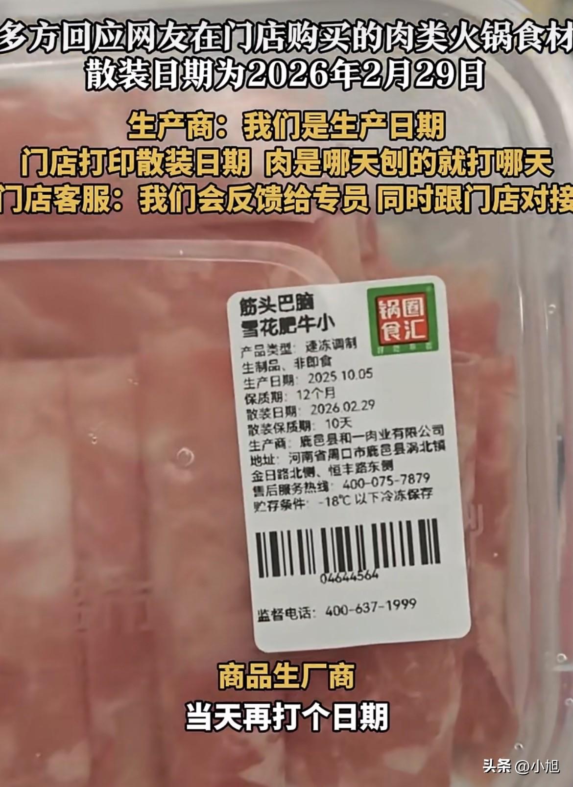 绝了,3月7号从冰柜里拿出来的羊肉片,包装上印的生产日期是2月29号。 西安那位网友拍下照片的时候,估计自己也懵了。2026年的2月只有28天,全国人民都知道。可这盒肉,就这么堂而皇之地躺在那儿,日期写在包装上,明晃晃的,像一个没人发现的bug。 厂家先跳出来撇清关系。话里话外就一个意思:我们只管出厂时候打的生产日期,门店什么时候拆开大包装、什么时候重新刨片分装、什么时候打印那个散装标签,跟我们没关系。肉是哪天刨的,门店就该打哪天的日期。 门店客服那边倒是客气,说收到反馈了,会跟专员对接,再跟门店核实。 然后这事儿就卡在这儿了。厂家说归门店管,门店说会去查,查来查去,那盒肉上的日期还是2月29号——一个根本不存在的日子。 有较真的人去翻了日历。2026年2月1号是周日,整个2月28天,从周日开始到周六结束,方方正正四个整周。前一阵网上还在传什么"823年一遇的特殊月份",后来专家出来辟谣,说平年2月这样很正常,平均不到十年就出现一次。 辟谣归辟谣,2月1号是周日这事,跟2月29号有啥关系?根本没关系统。因为2026年的2月,从头到尾,就没有29号这一天。 那问题就来了。 门店的说法是,肉哪天刨的就打哪天的日期。3月7号那天,从冰柜里拿出来的肉,刨成片、装盒、贴签,怎么就打印出来了,2月29号就算存在,那也是上个月的事了。 除非这盒肉,是2月份刨的,一直在冷柜里放着,放到3月7号还没卖出去。或者更早,是上一个闰年——2024年刨的?2024年倒是有2月29号。 还有人说,会不会是打日期的人手一抖,把28按成了29。这种可能性,需要解释另一个问题——为什么从头到尾没一个人发现?从肉刨出来到包好贴上签,再到摆上货架被顾客拿走,中间经过多少双手,没一个人觉得2月29号有问题? 河北那边去年出过类似的事。有个卖熟食的,酱牛腱子标签上印的生产日期是2025年6月15号,保质期60天。旁边又印了个拆包日期,2025年6月16号,后面跟着一行小字:拆包后冷藏保质期3天、常温1天。 市场监管局的人去查,发现这店里的套路挺深。自己做的食品,包装上印的"生产日期"其实是封口日期,真实的生产日期比那个早多了。外面买回来拆开卖的熟食,就把"拆封日期"当成"生产日期"往上印。 后来这事儿定性了,叫"生产经营虚假标注生产日期食品"。 西安这事跟河北那个,本质上是一个毛病。只不过河北那家至少还编了个像模像样的日子,西安这家直接编了个不存在的。 翻翻那些散装食品的规定,写得挺清楚。销售散装食品,要在容器或者外包装上标明食品名称、生产日期、保质期。标明的生产日期,必须跟出厂标注的日期一致。经营过程中分装的食品,不能更改原有的生产日期,更不能延长保质期。 也就是说,门店把大包装的肉拆开,重新刨片分装,可以在新包装上打日期,但这个日期,得跟原来大包装上的生产日期对得上。不能大包装是1月1号生产的,你分装的时候打上3月7号。当然,也不能打一个根本不存在的日子。 问题是,这条规定在执行的时候,有个挺大的漏洞。 厂家把大包装的肉卖给门店,大包装上的生产日期是真实的。门店拆开分装,理论上应该把大包装上的那个日期抄到小包装上。但这个"抄"的过程,全凭门店自觉。今天卖的是哪批肉,生产日期是哪天,全靠店员拿记号笔或者打码机往上写。写对了没人夸,写错了也没人知道——只要肉吃着没坏,谁在乎那个日子? 江苏兴化那边去年搞过一次整治。有志愿者在零食店买散装零食,发现包装上没生产日期,货柜上也找不到。检察院的人去查,发现不少店都这样。后来发了检察建议,要求整改。再回访的时候,散装食品容器外头总算摆上了标签牌,上面写着生产日期、保质期,而且随着食品更换,标签也跟着换。 重庆涪陵那边也查过,超市里的大米、面粉、坚果,外包装上找不着生产日期。检察官有句话说得挺直接:散装食品标签就是食品的身份证,缺了这些信息,等于让消费者盲选。 消费者站在冰柜前面,看见一盒盒分装好的肉,包装上印着日期。谁有时间去查这日子是不是真的?谁有能力去验证这肉到底是哪天刨的? 太原有个阿姨,给孙子买零食,为了看清生产日期,手扶老花镜,仰着头在灯光下转来转去,折腾出一头汗。有人买40斤的面粉,生产日期印在袋子底部,得先把面放倒,趴地上看。 市场监管总局去年发了个公告,鼓励食品企业把生产日期印在醒目位置,字大点,颜色清楚点。今年又出了个办法,把这些鼓励措施变成了强制要求。 西安那盒肉,最后会怎么处理?门店说会查,厂家说跟自己没关系,肉还在顾客手里。查到最后,大概率是"员工操作失误"——手误、眼误、脑子误,误来误去,误出一个2月29号。 只有一个问题没想明白:一盒肉,到底是怎么穿过层层关卡,带着一个不存在的生日,落到人手里的? 这事你怎么看?