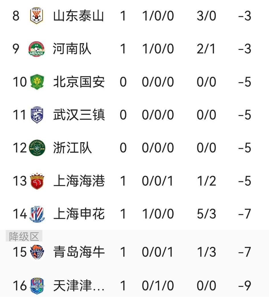 其实,负分起步并无啥了不起,仅一轮之后,被罚分队的积分全部都达-10分之内。 申花-10变-7、山东泰山-6变-3、河南-6变-3、天津-10变-9,仅海港仍是-5、海牛仍是-7。明天国安VS三镇、浙江VS西海岸之战,前者大概率是要减负的。 所以只要有实力能发挥,受罚球队完全有奋起直追缩小分差的机会。今年中超竞争仍会精彩不断、高潮迭起。