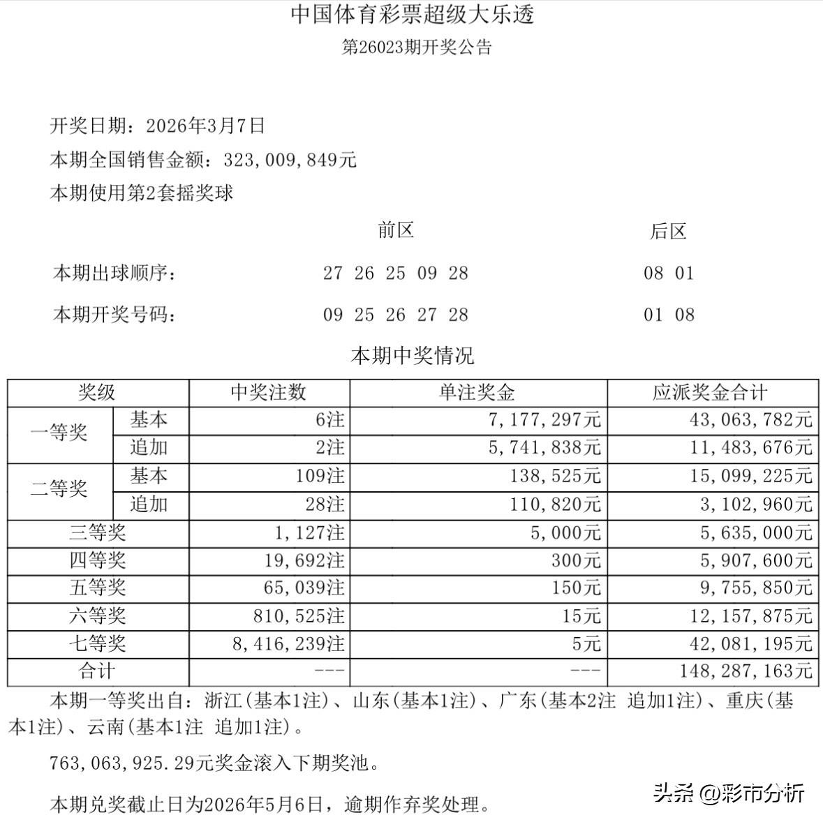 717万头奖!大乐透罕见4连号形态丝毫不影响中奖:头奖6注717万包括2注追加1291万元追加头奖分别出自广东云南,其余4注基本头奖出自浙江山东广东重庆,中奖数量并不比所谓正常号码期次少。二等奖109注13.8万,追加后单注24万元,相比双色球二等奖看金额成色的确没啥优势。最新奖池滚存7.6亿元,距离8亿高返奖仍有距离,看来期待高返奖还得等等啦![大笑][大笑]