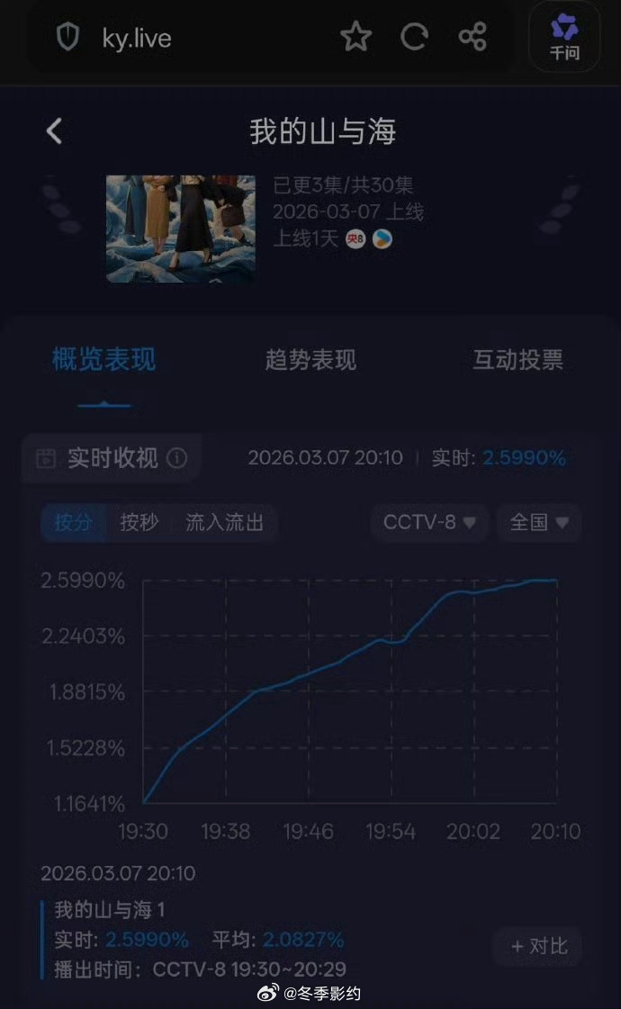 谭松韵我的山与海收视破2.5从第一集就开始飙收视,谭松韵这cvb体质真是没谁了。《我的山与海》这才刚开始,后面还要冲更高
