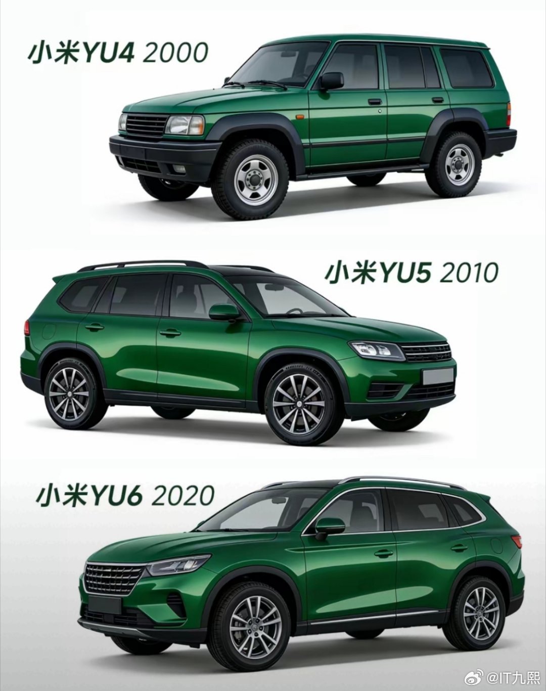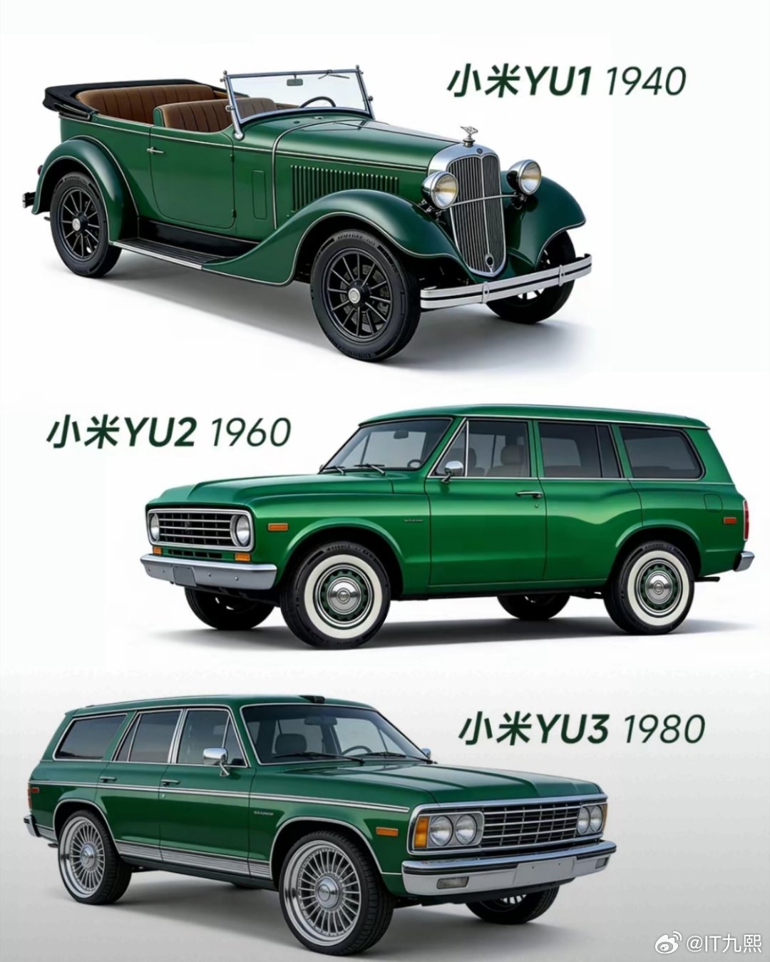 网友用AI生成“小米汽车百年发展史”,以宝石绿为主色调,串联起从1940到202