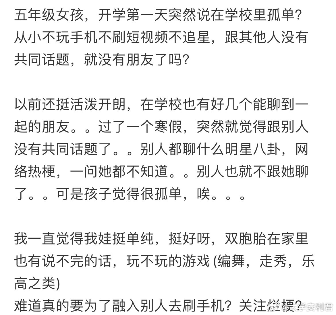 五年级女孩,开学第一天突然说在学校里孤单?