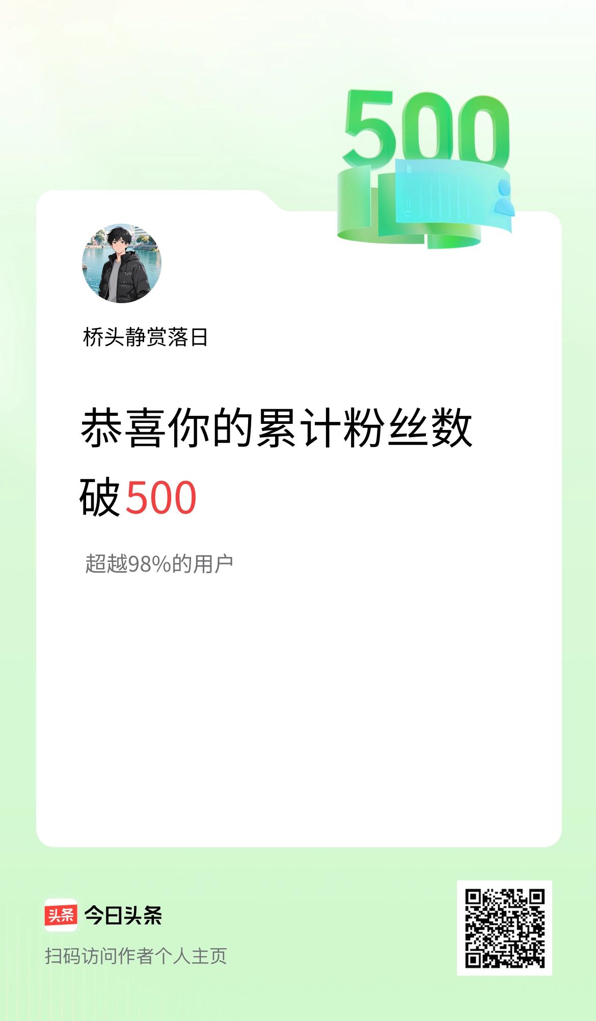 我在头条累计粉丝数破500啦!