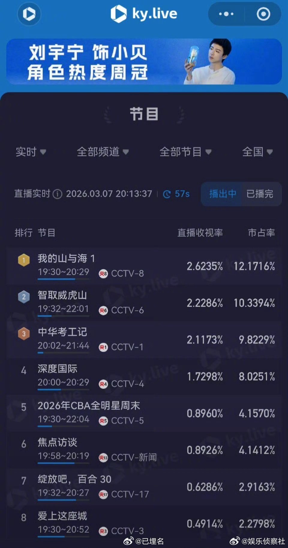谭松韵我的山与海首播收视率破2.6央视热播大剧谭松韵《我的山与海》首播收视狂飙,酷云峰值直接破2.6,稳居全国同时段收视TOP1,开门红太亮眼!谭松韵用实力证明国民收视号召力,饰演的方婉之质朴又有韧劲,演技细腻共情力拉满。剧情扎实、年代感十足,台网热度双爆,口碑收视双丰收。跟着谭松韵一起,见证方婉之跨越山海、逆风成长,年度品质好剧追起来!✨