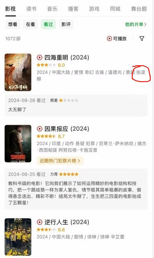 《逐玉》编剧被发现给很多剧豆瓣打一分! 《逐玉》编剧曾珍给很多剧打了一分差评,包含《逐玉》男女主张凌赫和田曦薇之前多部作品,看不出是谁的粉丝,只能说对作品和演员要求太严格了,虽然这个账号很快被注销了,但是已经影响到了《逐玉》,《逐玉》的豆瓣打分通道被紧急关闭了。