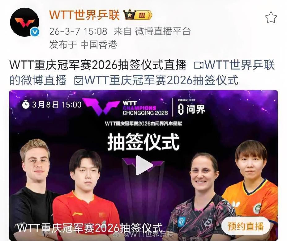 重庆冠军赛抽签临时换人了, 不都是上界男女单冠军抽签吗? 重庆冠军赛3月8日抽签, 却通知临时换人了, 孙颖莎换成了朱雨玲, 也不是说换别人不行, 你这都到时间了临时换人有点不好吧。 有人说莎莎明天有安排, 所以才换人, 具体真不知道什么原因。 也有网友说, 第一次见换抽签人的, 不过什么事发生在莎莎身上也不奇怪。 其实也不奇怪, 新加坡大满贯半决赛, 因为对手穿同色衣服, 不是让莎莎换的吗? 之前有规定说是排名靠后的换, 结果最后莎莎把衣服换了。 这次重庆冠军赛还没开始比赛, 就临时换人了。 其实无所谓了, 只要莎莎健康完赛就好, 这些细枝末节可以忽略不计。 (图片源自于网络) 带定位晒今日生活 我的今日状态:😁轻松愉快 我这里的天气:☁️阴天