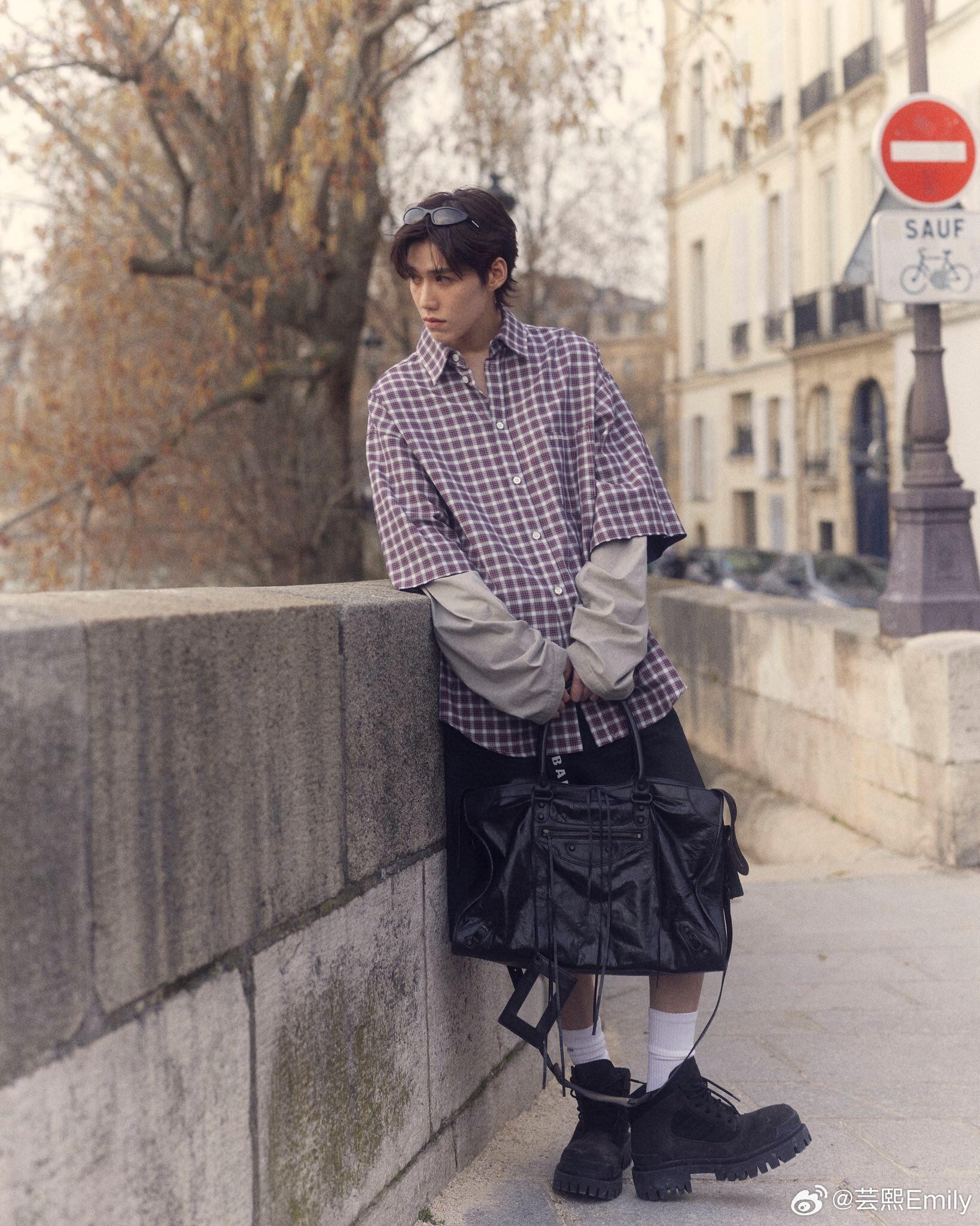 PP现身巴黎时装周Balenciaga品牌代言人PP Krit 亮相巴黎,解锁Balenciaga Winter 26 ClairObscur大秀。一身2026夏季系列全套造型,Wrong Sleeve Shirt解构衬衫搭配Belted Shorts短裤,手拎全新Le City ultralight黑色小牛皮手袋,脚踩Combat Strike靴子,利落先锋,气场拉满。巴黎世家大秀巴黎时装周