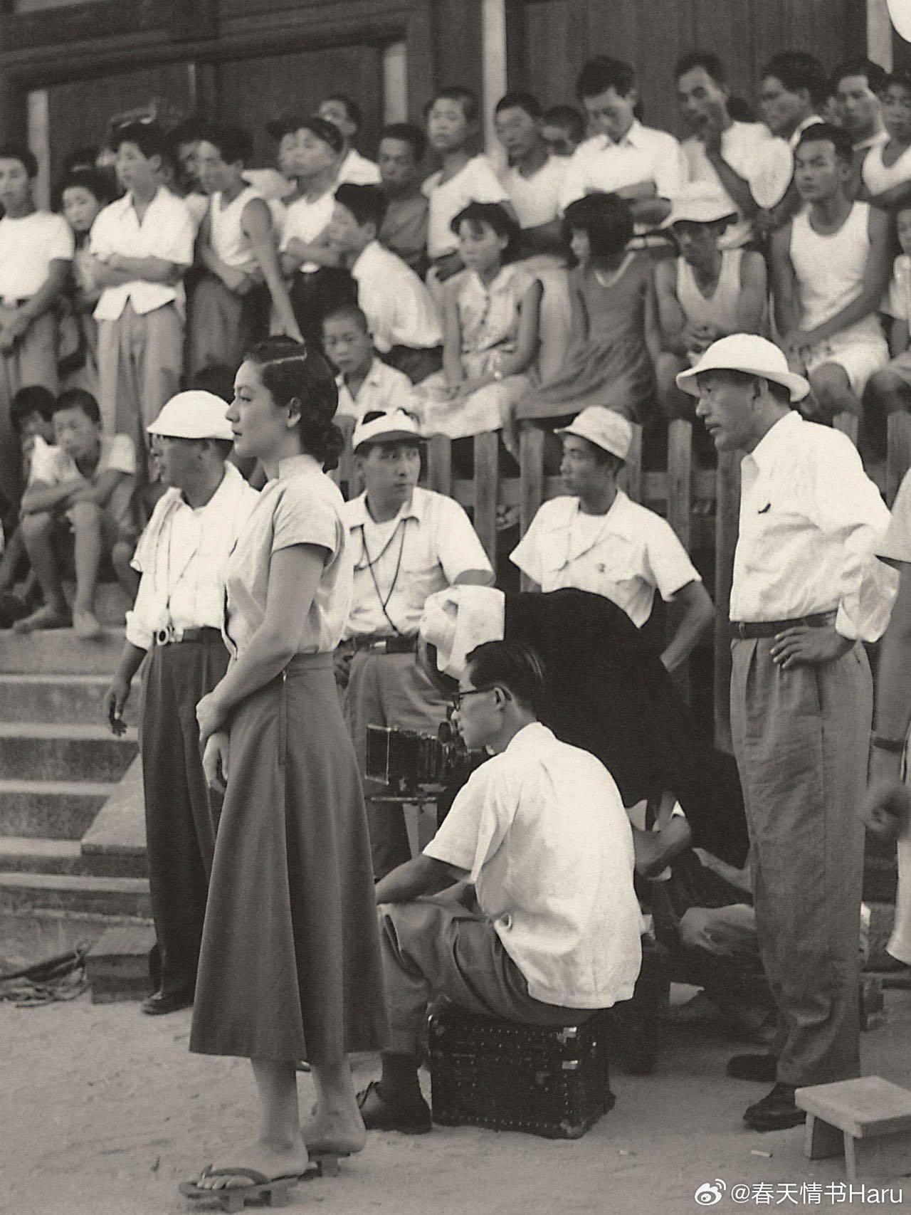 小津安二郎和原节子在《东京物语》的一张片场照